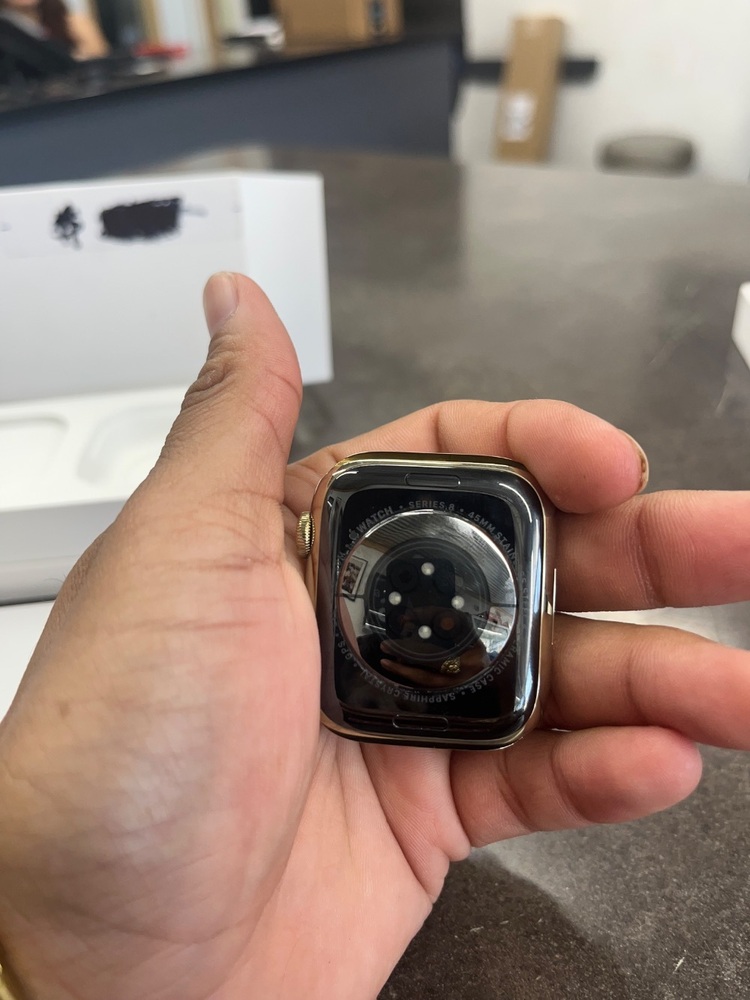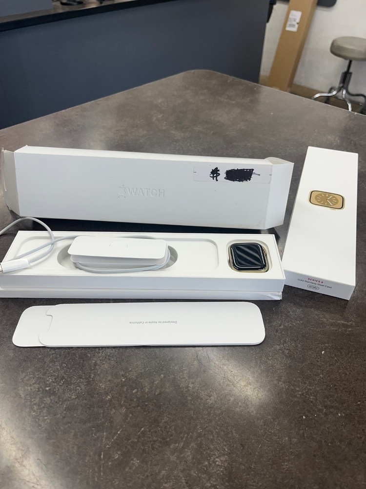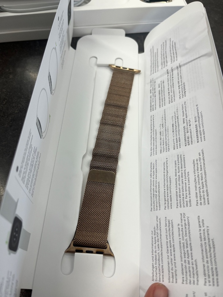 COMES IN THE ORIGINAL BOX, WITH THE CHARGER AND GOLD MENTAL BAND. SIZE 45MM.