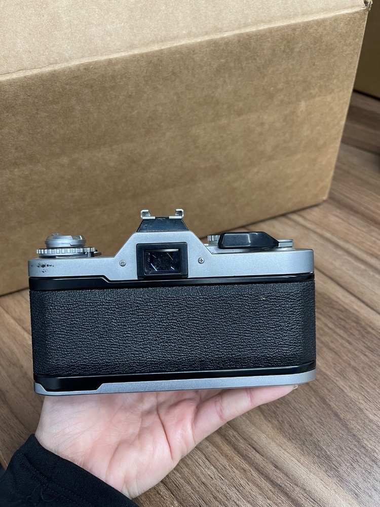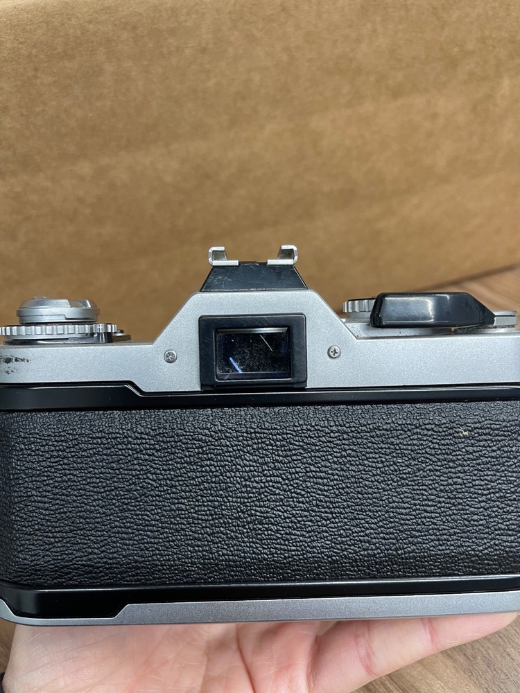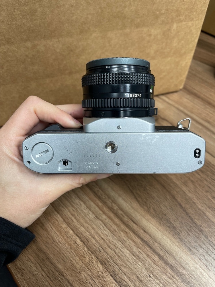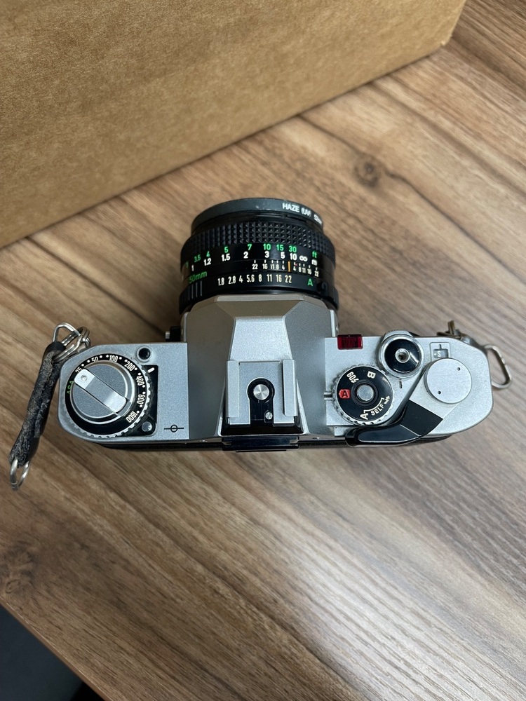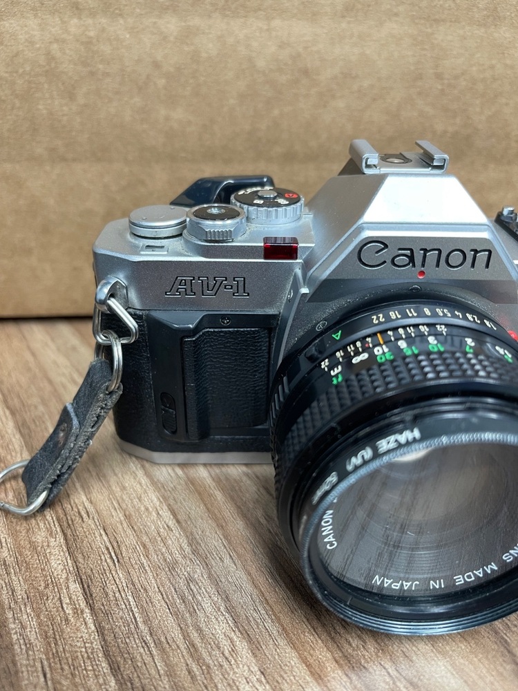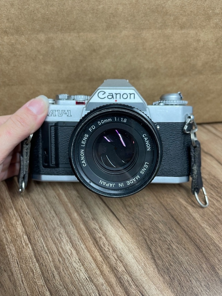 For sale we have a Canon AV-1 Film Camera in good condition, with some marks and scuffs from every day use as shown in pictures. Comes with a Canon 1:1.8 50 mm lense, no original box, if you have any questions before purchasing please let us know.
