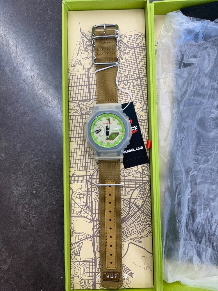 For sale we have a Casio G Shock x Huf watch in new condition, with it's original box and papers as shown. If you have any questions before purchasing please let us know.