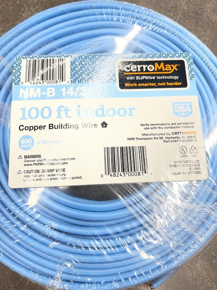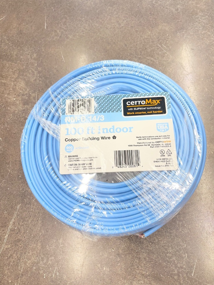 For sale we have a CerroMax 100 ft indoor wire in new condition, still sealed in it's packaging as shown in pictures. If you have any questions before purchasing please let us know.