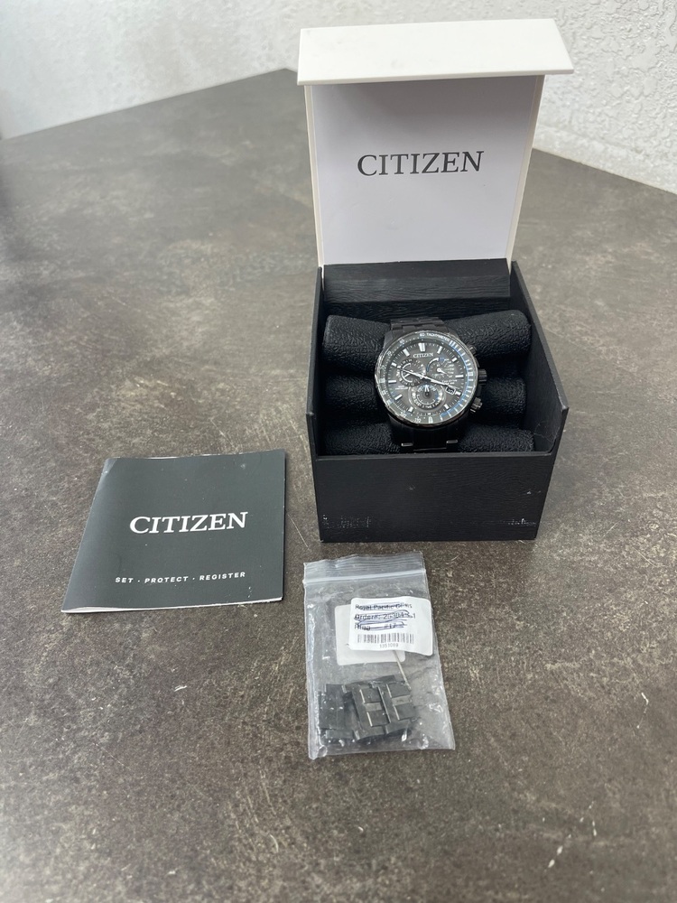 For sale we have a Citizen Men's Atomic Watch in good condition, with some marks and scratches from every day use as shown in pictures. Comes with it's original box, manual, and extra links. If you have any questions before purchasing please let us know.
