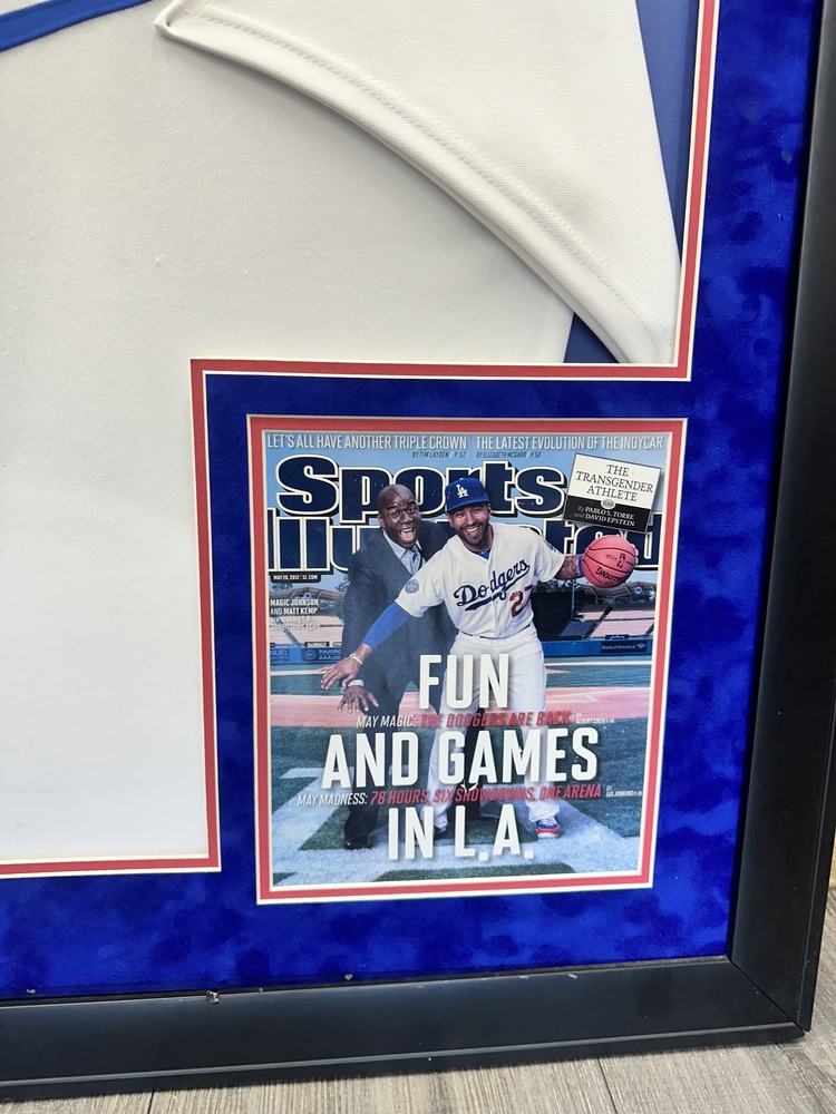 DODGERS MATT KEMP & MAGIC JOHNSON SIGNED JERSEY + SPORTS ILLUSTRATED MAGAZINE