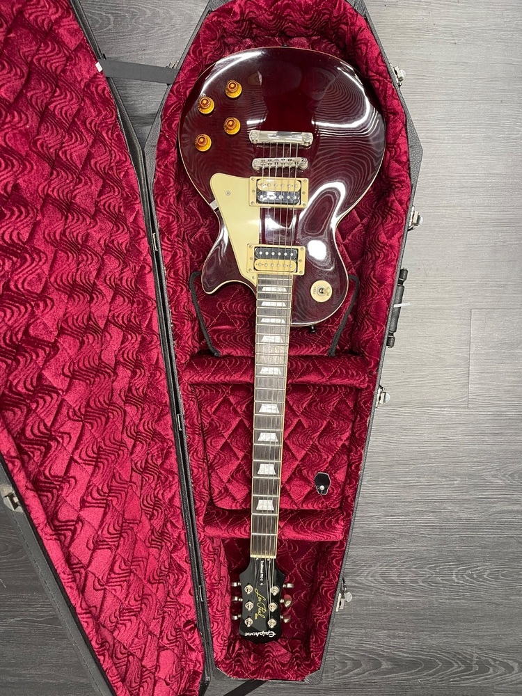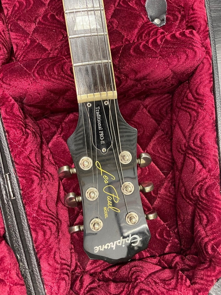 For sale we have a Epiphone Les Paul Traditional Pro guitar in good condition, with some signs of every day use as shown in pictures. Comes with a black Coffin case, if you have any questions before purchasing please let us know.