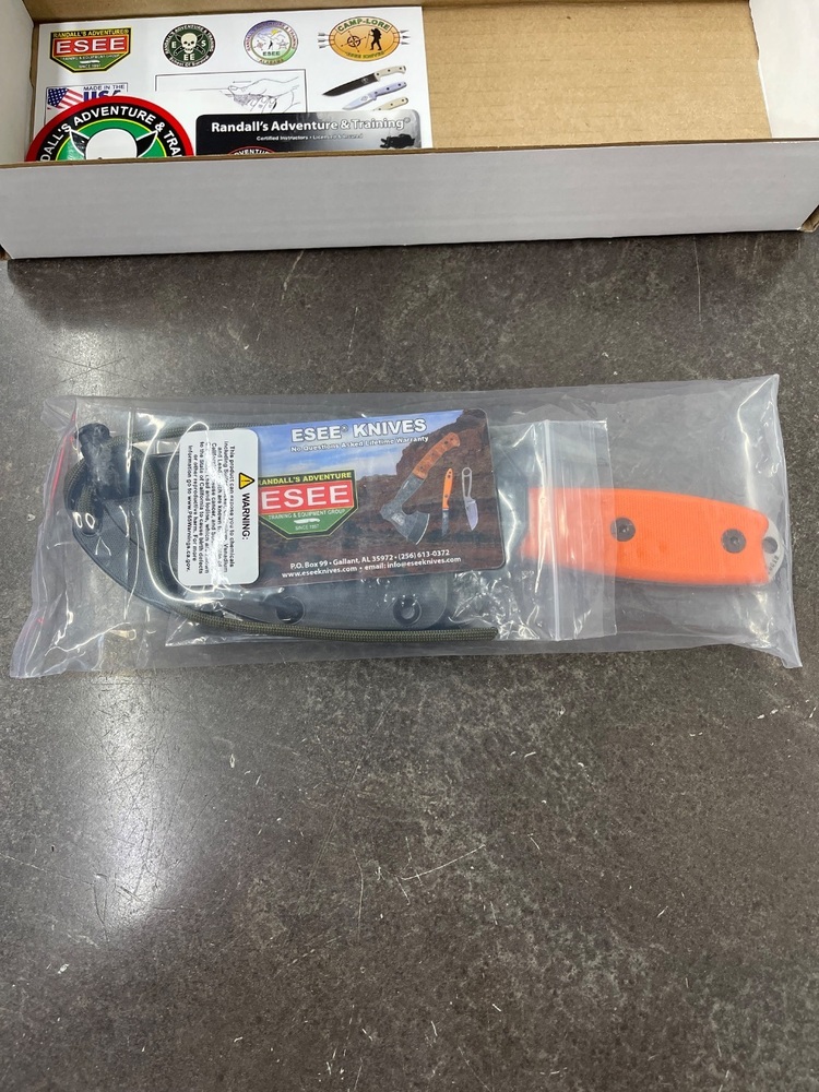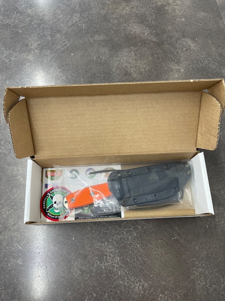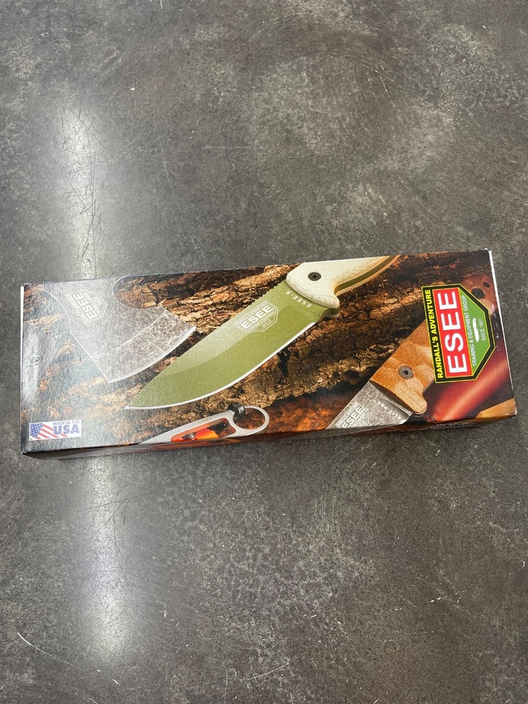 For sale we have a Esee Model 4 knife in open box condition, with it's accessories and papers as shown in pictures. If you have any questions before purchasing please let us know.