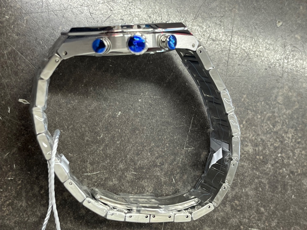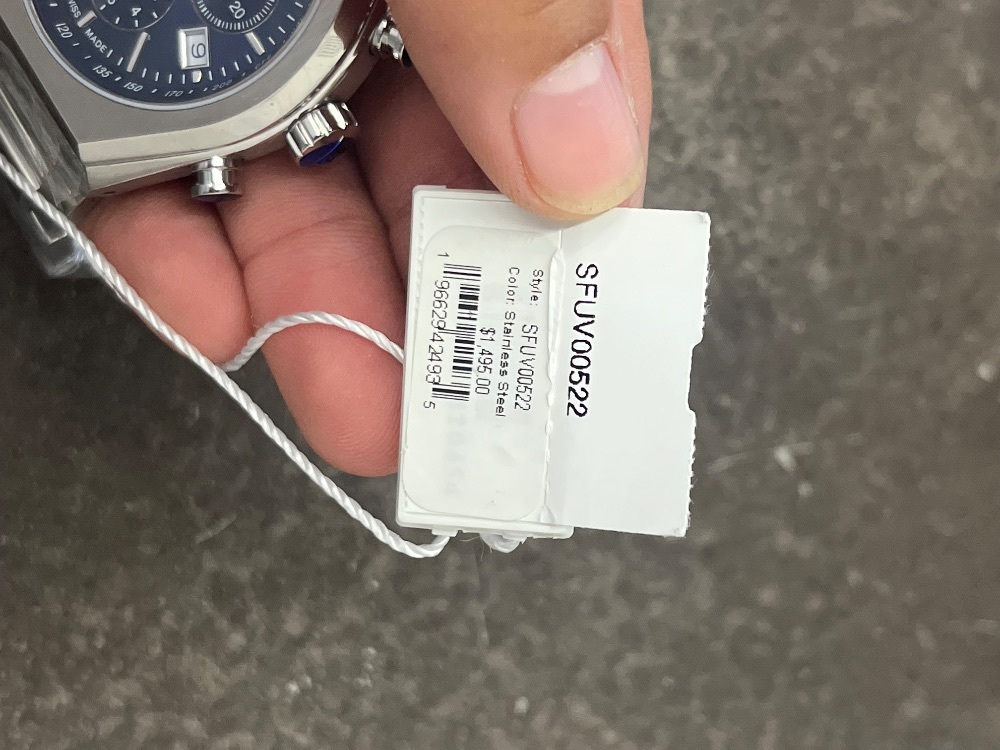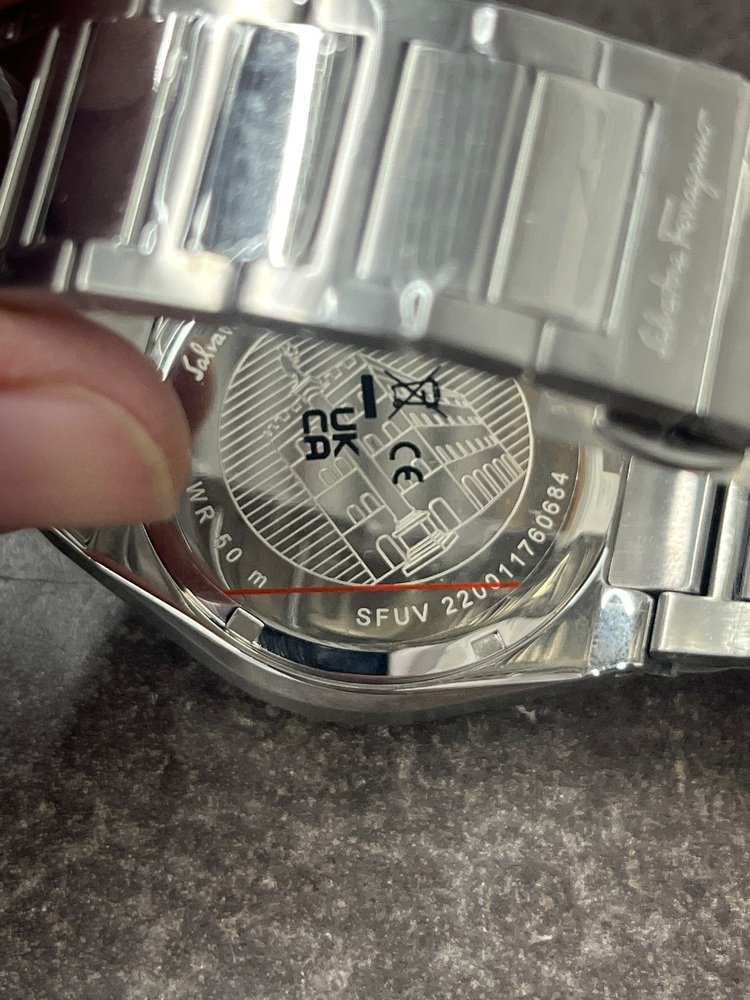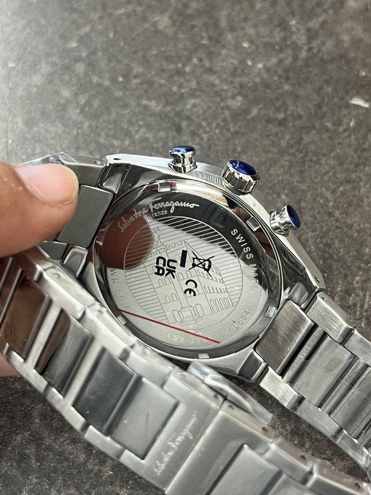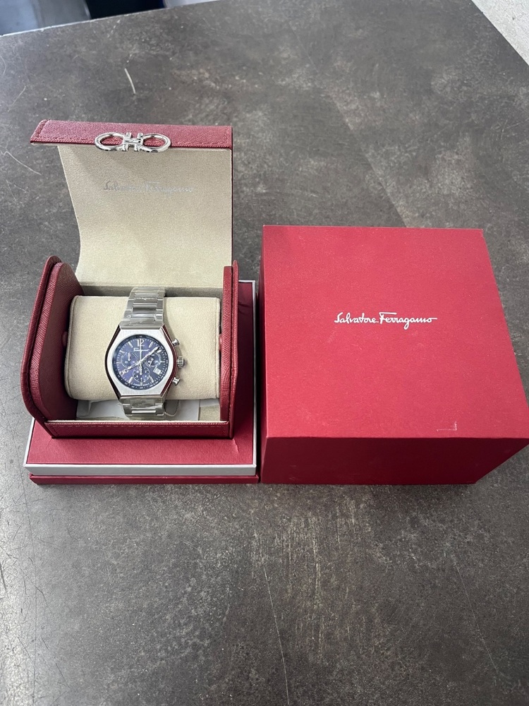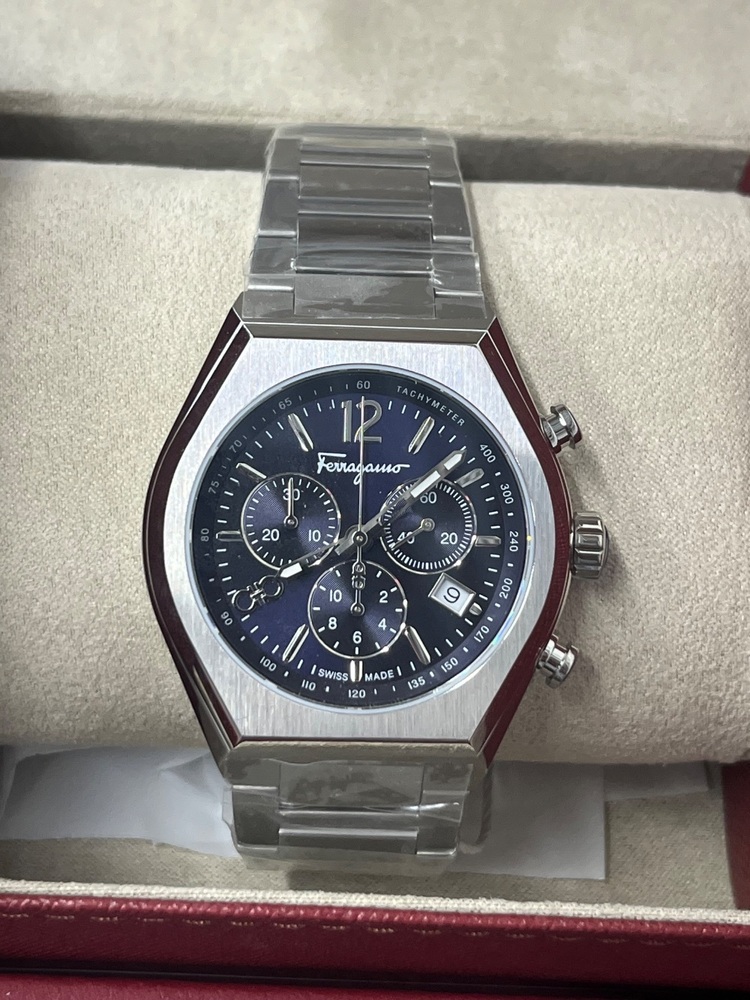 FOR SALE IS A FERRAGAMO SFUV00522 TONNEAU CHRONOGRAPH BLUE DIAL WATCH .