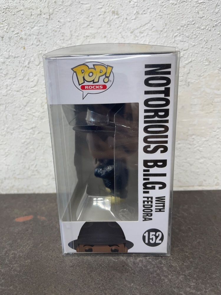 For sale we have a Notorious BIG Funko Pop in new condition, with some signs of handling on outside of box as shown in pictures. If you have any questions before purchasing please let us know.
