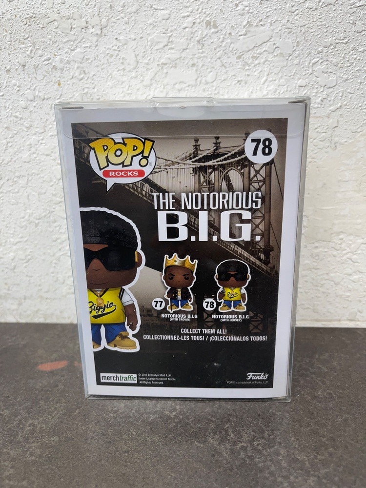 For sale we have a Notorious BIG Funko Pop in new condition, with some signs of handling on the outside of the box as shown in pictures. If you have any questions before purchasing please let us know.