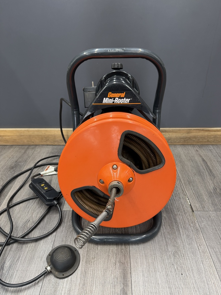 For sale, we have a General Mini Rooter 50ft 1/3HP Sewer Snake. In good condition with some marks and scuffs from use as shown in the pictures. If you have any questions before purchasing please let us know. (136019)(RIS)