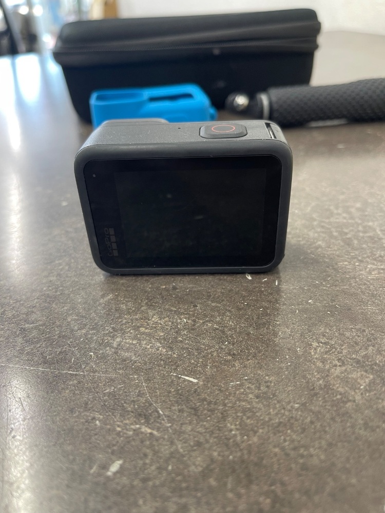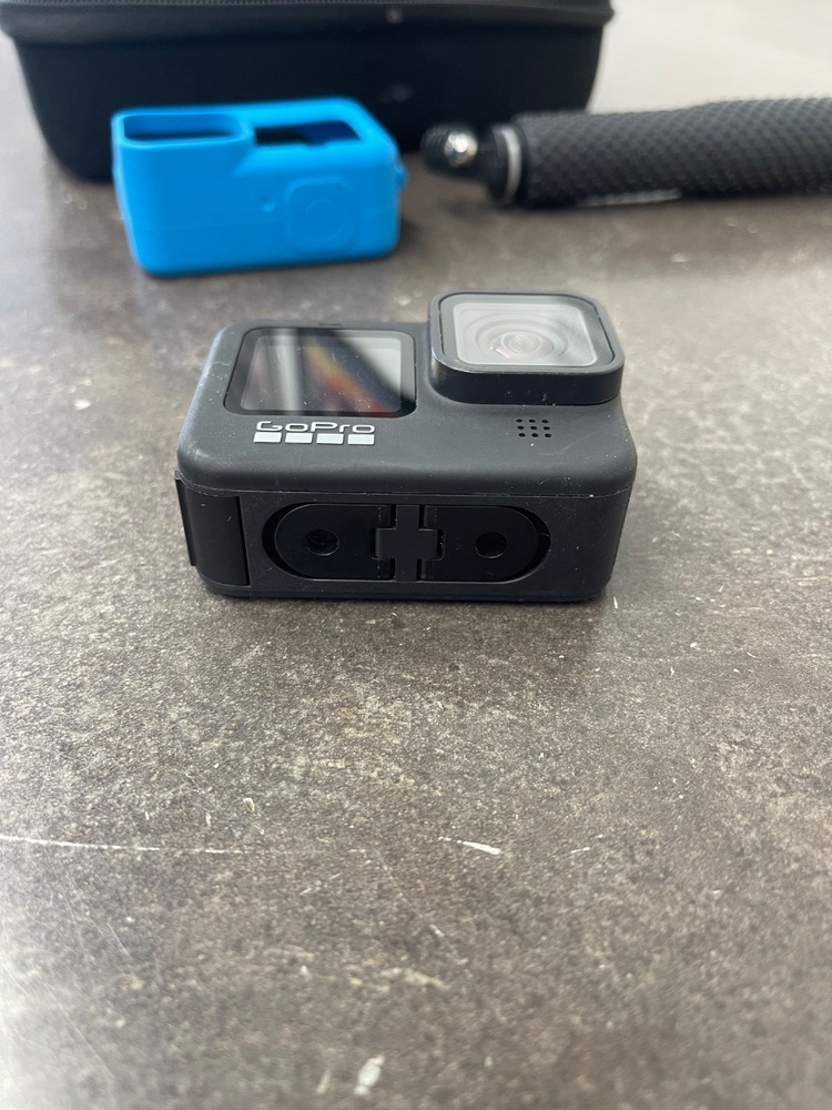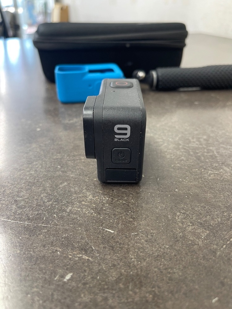 For sale we have a GoPro Hero 9 Black in good condition, with some marks and scuffs from every day use as shown in pictures. Comes with original case, 1 battery, holder, and rubber sleeve. If you have any questions before purchasing please let us know.