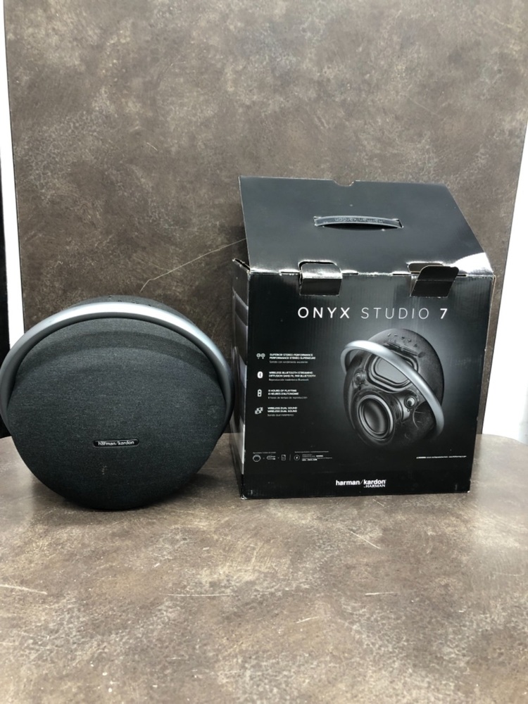 For sale we have a Harmon Kardon Onyx speaker in good condition, with some marks and scuffs from every day use as shown in pictures. Comes with it's original box, no charger, if you have any questions before purchasing please let us know.