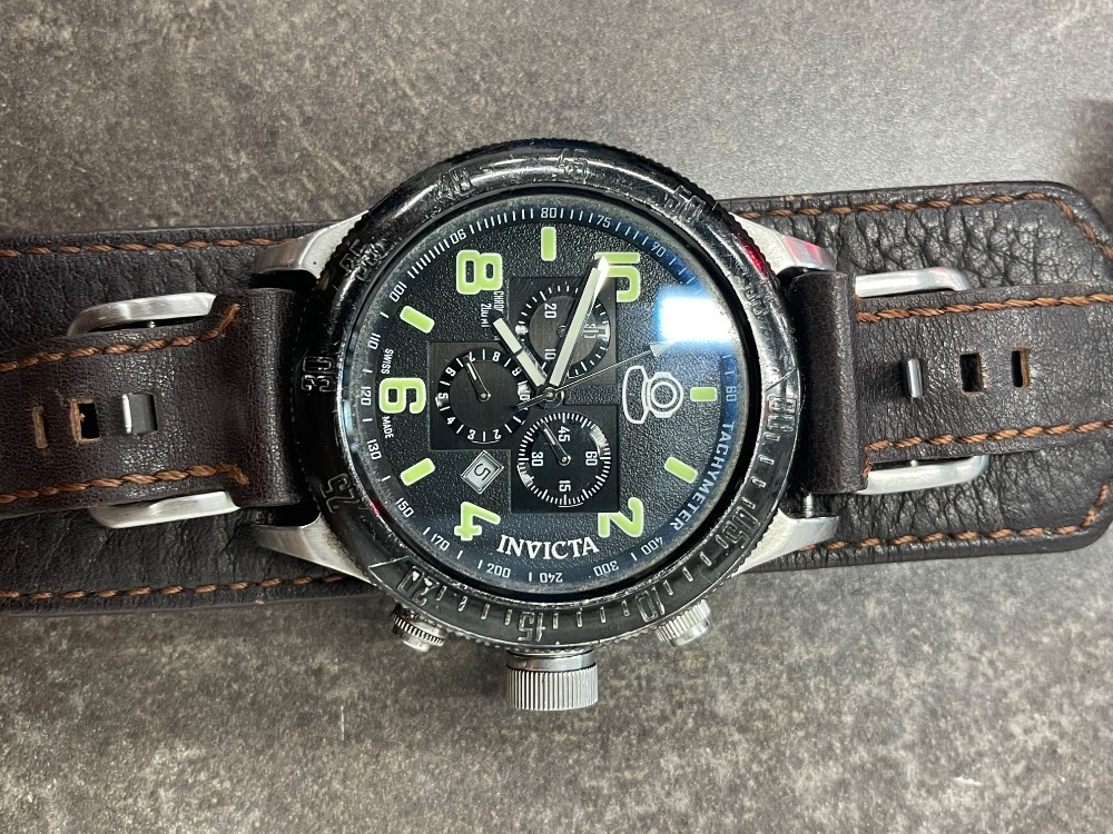 For sale we have an Invicta Russian Diver in good condition, with some marks and scuffs from every day use as shown in pictures. Come's with Guess genuine leather straps, no original box or papers, if you have any questions before purchasing please let us know.