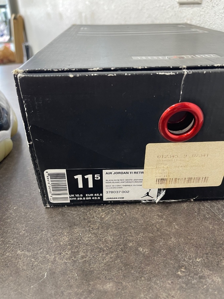 For sale we have a pair of Jordan 11 retro's in good condition, with some marks and scuffs from every day use as shown in pictures. Comes with their original box, if you have any questions before purchasing please let us know.