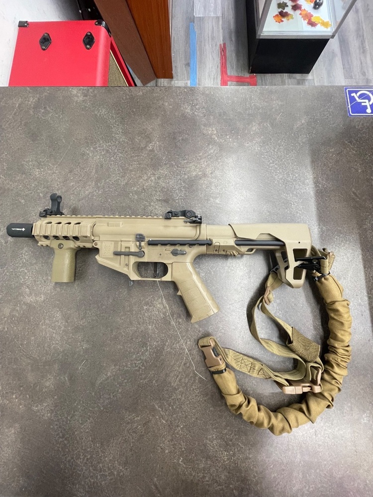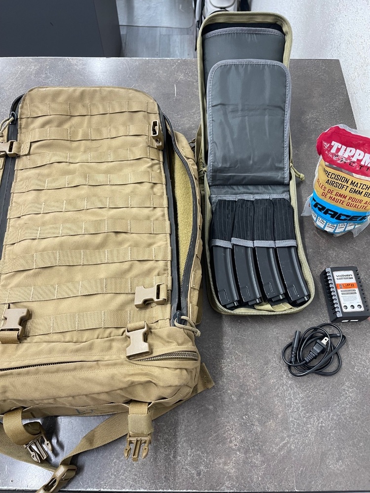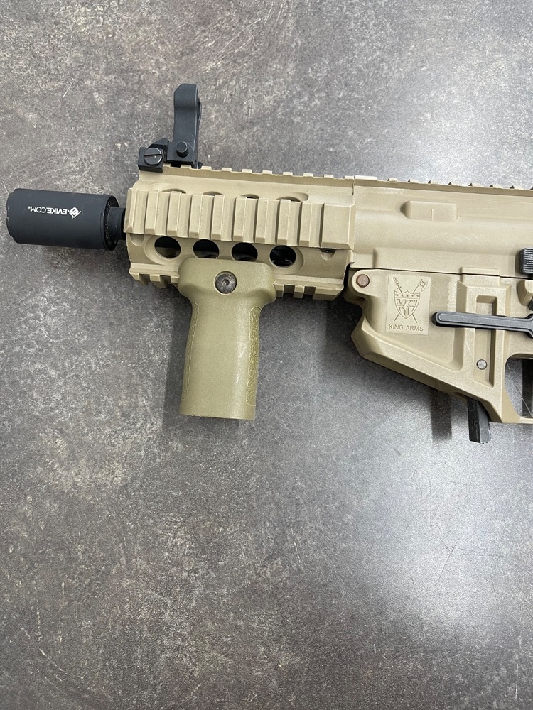 For sale we have a King Arms airsoft rifle in good condition, with some marks and scuffs from every day use as shown in pictures. Comes with soft bag, mags, and 1 bag of BB's, if you have any questions before purchasing please let us know.