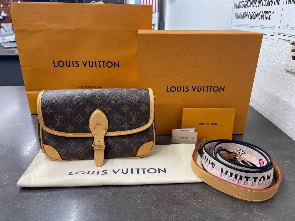 For sale is a Louis Vuitton Diane NMPM shoulder bag, model M46049 with its 'Black' thicker strap. The handbag is in great condition and appears to be new and unused. The listing will come with its Louis Vuitton box, dust bag, shopping bag and tags. The box has a few spots on it that can be seen better in pictures.