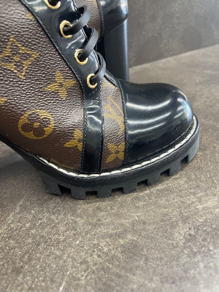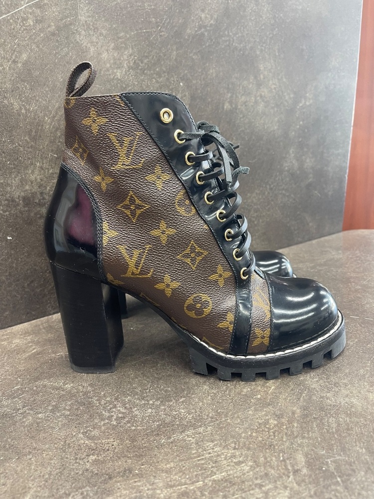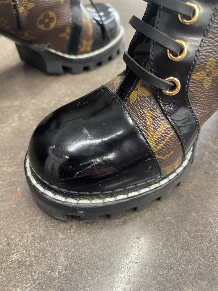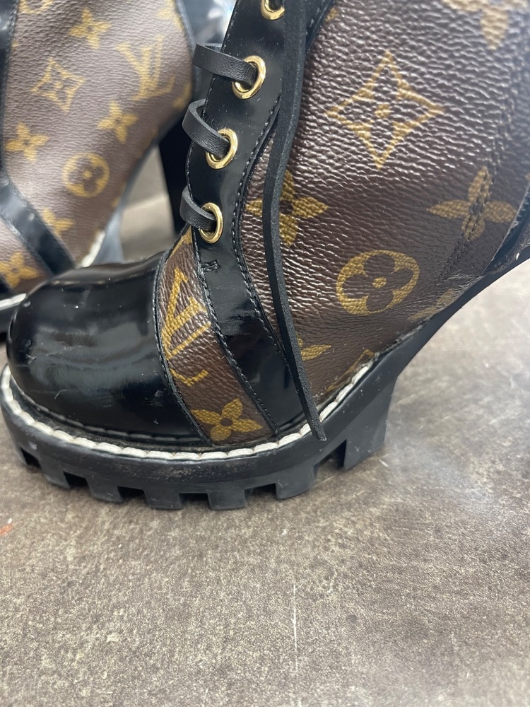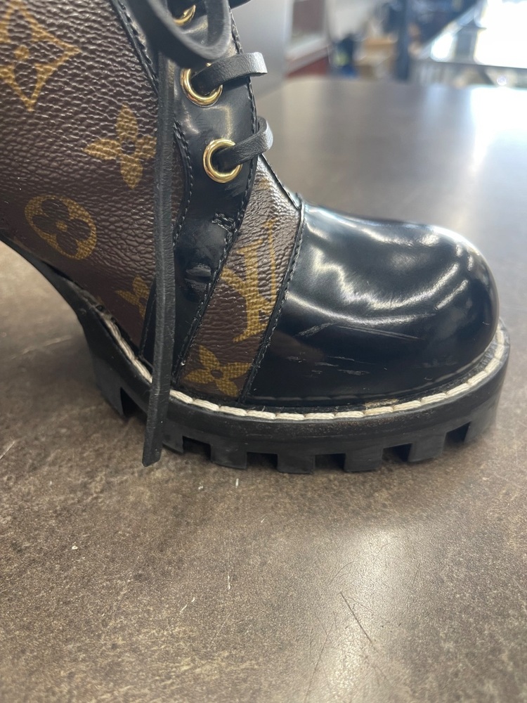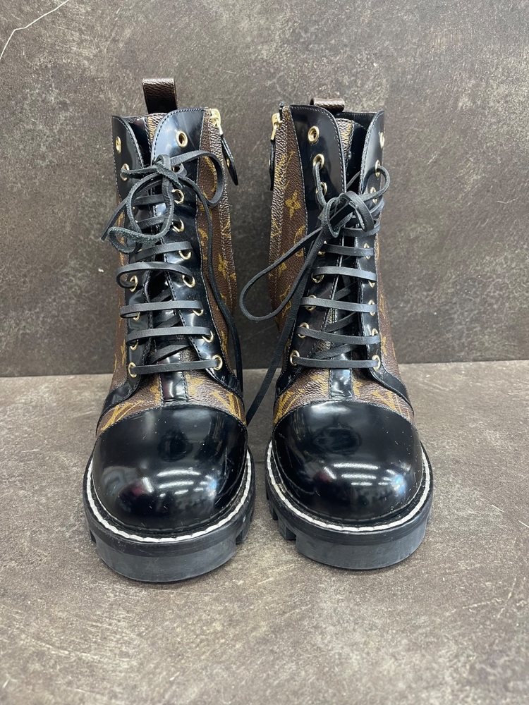For sale we have a pair of Louis Vuitton women's ankle monogram boots in good conditon, with some marks and scuffs from every day use. Boots only, does not come with original box or dust bags, if you have any questions before purchasing please let us know.