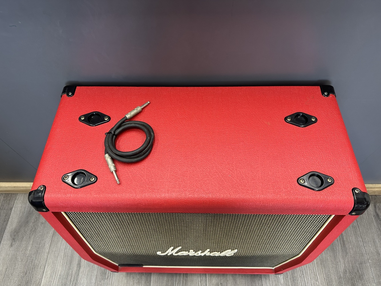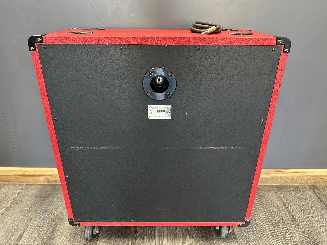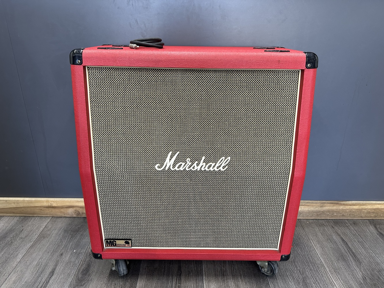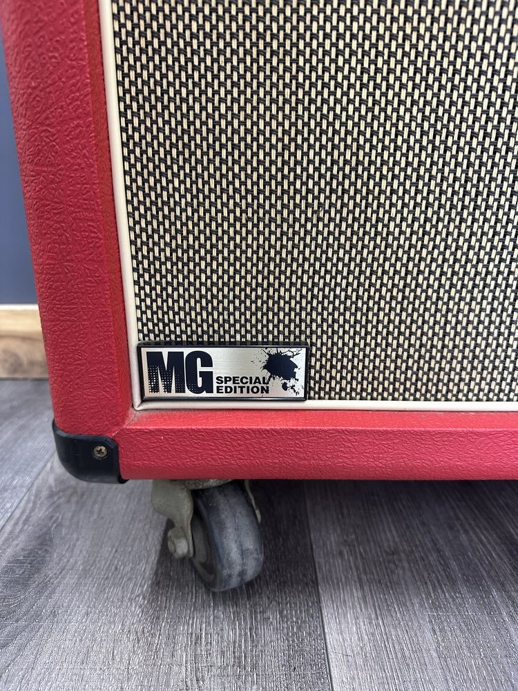 For sale, we have a Marshall MG Series Special Edition MG412A Slant 4x12" Cab in Red Tolex. In excellent condition with some marks on the cab and small cracks on the side handles as shown in the pictures. If you have any questions before purchasing please let us know. (140130)(WX)