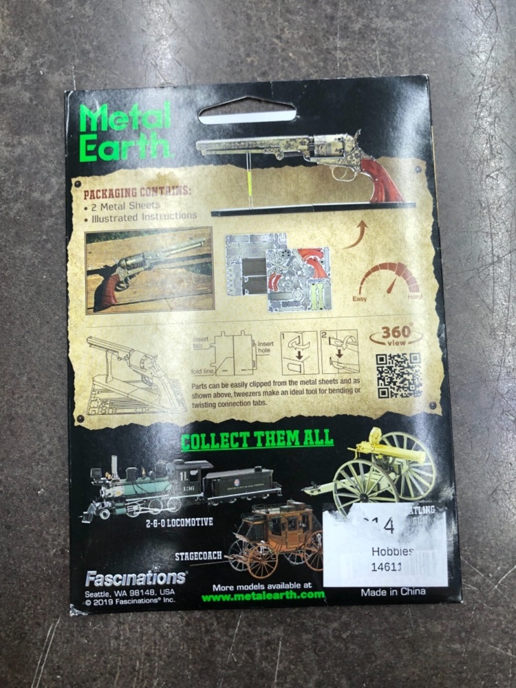 For sale we have a Metal Earth Revolver Steel Model kit in new condition, with minimal signs of handling on outside of packaging. If you have any questions before purchasing please let us know.