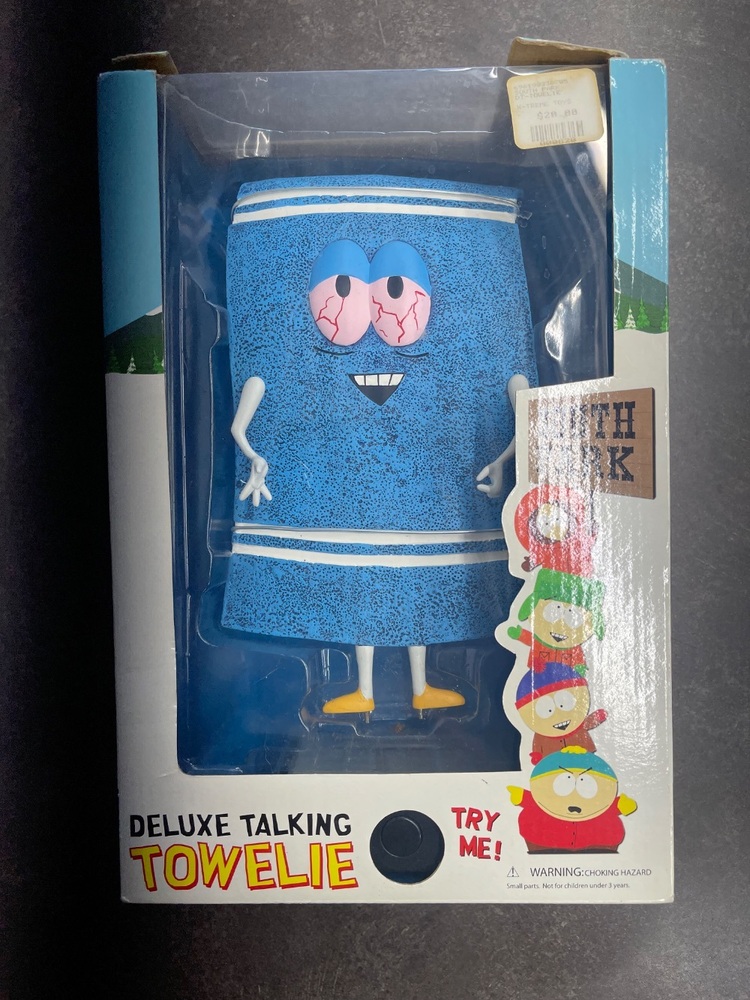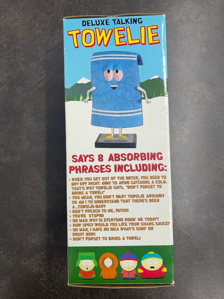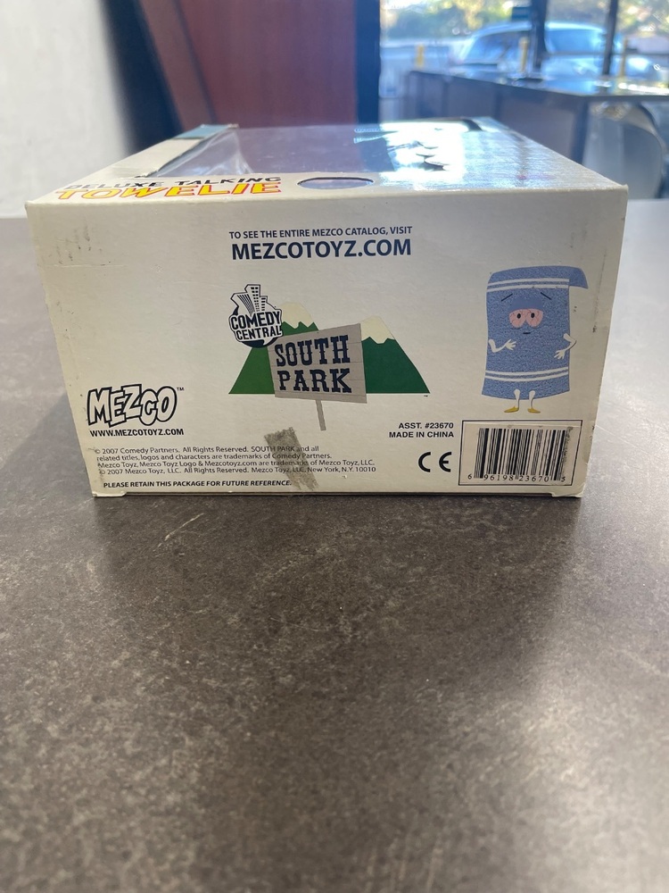 For sale we have a Mezco Toys South Park Towelie collectible in new condition, with some dents and signs handling on outside of box as shown in pictures. Collectible only, if you have any questions before purchasing please let us know.