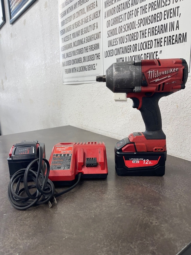 For sale we have a Milwaukee Impacr Wrench in good condition, with marks and scuffs from every day use as shown in pictures. Comes with 2 after market batteries, and one original charger, if you have any questions before purchasing please let us know.