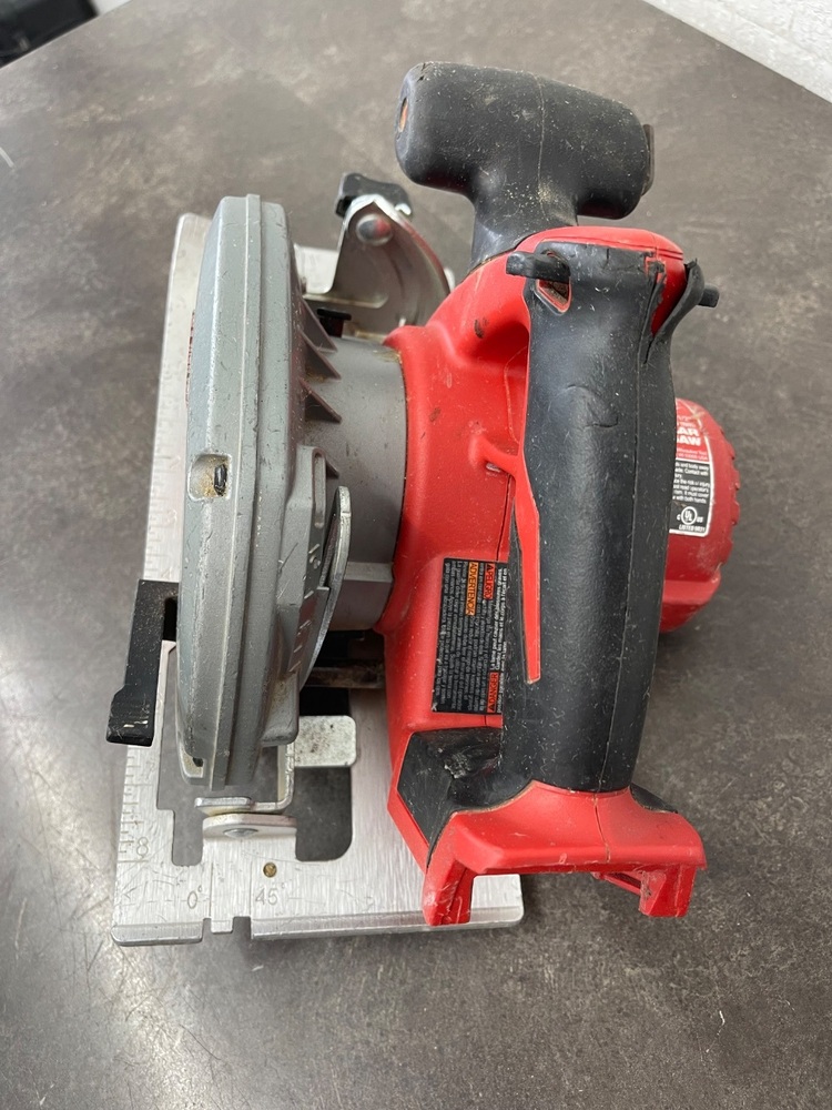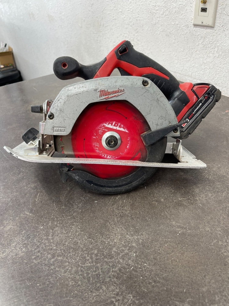 For sale we have a Milwaukee Circular Saw in good condition, with some marks and scuffs from every day use. Comes with one Milwaukee M18 CP 2.0 battery, no charger, if you have any questions before purchasing please let us know.