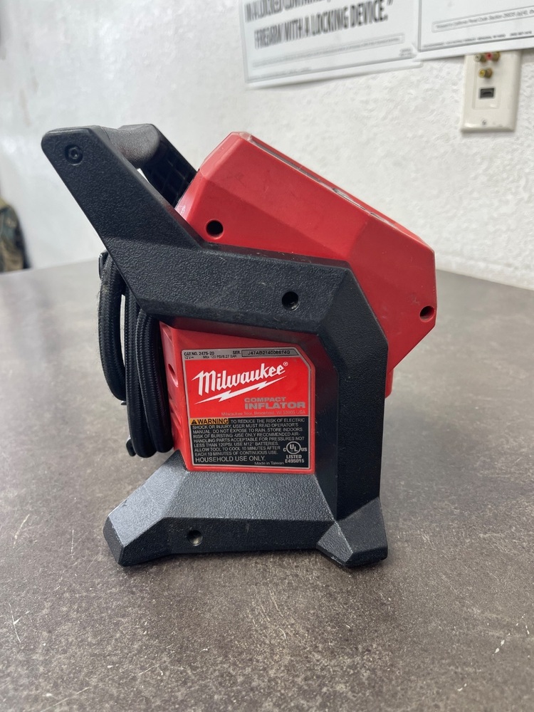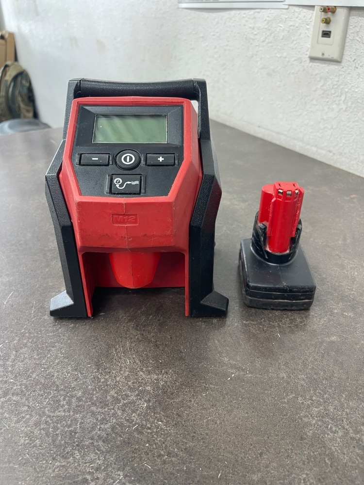 For sale we have a Milwaukee Compact Inflator in good condition, with some marks and scuffs from every day use as shown in pictures. Comes with 1 Milwaukee XC 4.0 battery, no charger, if you have any questions before purchasing please let us know.