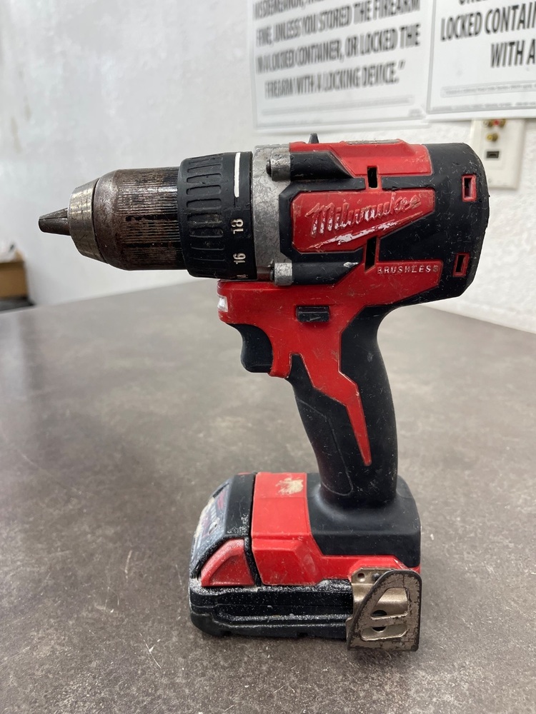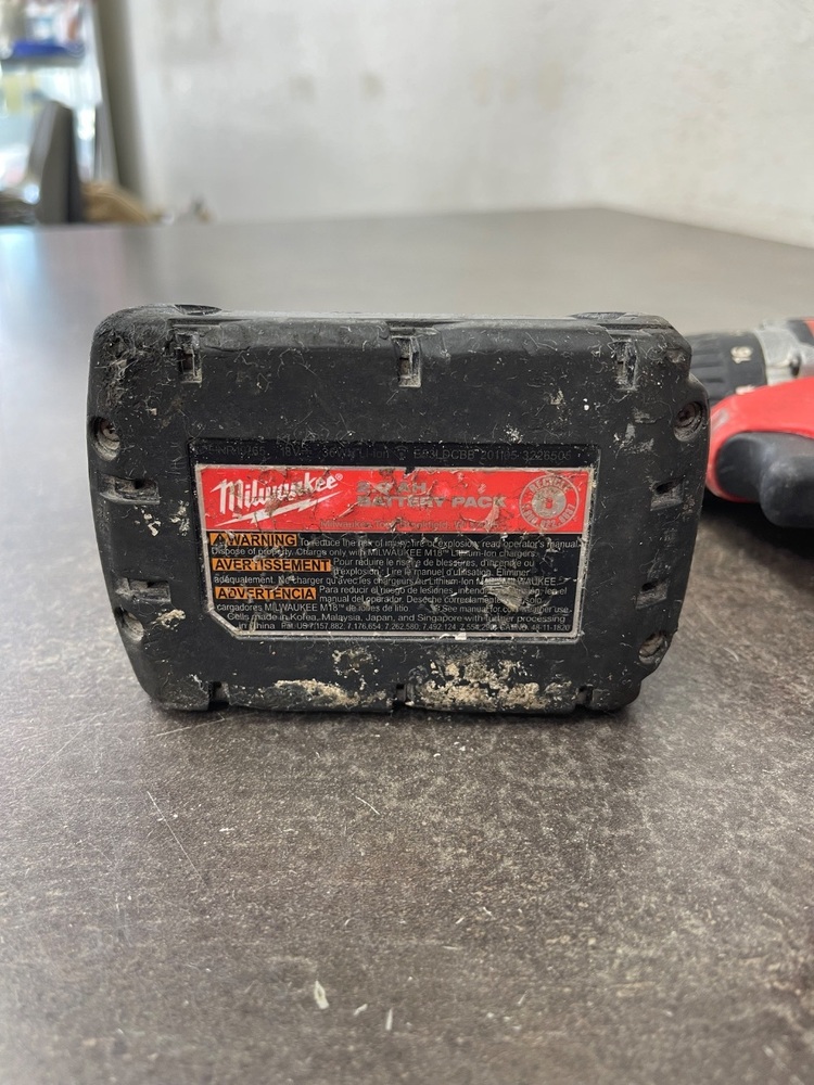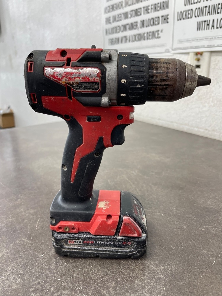 For sale we have a Milwaukee Drill in good condition, with marks and scuffs from every day use as shown in pictures. Comes with one Milwaukee M18 Red Lithium CP 2.0 battery, no charger. If you have any questions before purchasing please let us know.