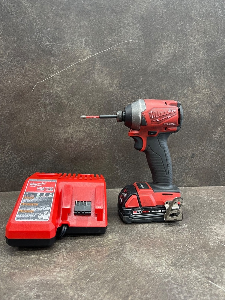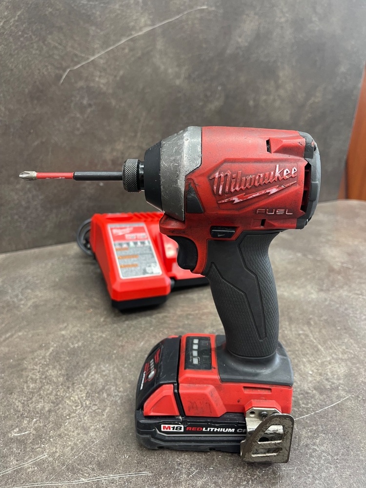 For sale we have a Milwaukee Hex Impact in good condition, with some marks and scuffs from every day use as shown in pictures. Comes with 1 original charger, and 1 battery, if you have any questions before purchasing please let us know.