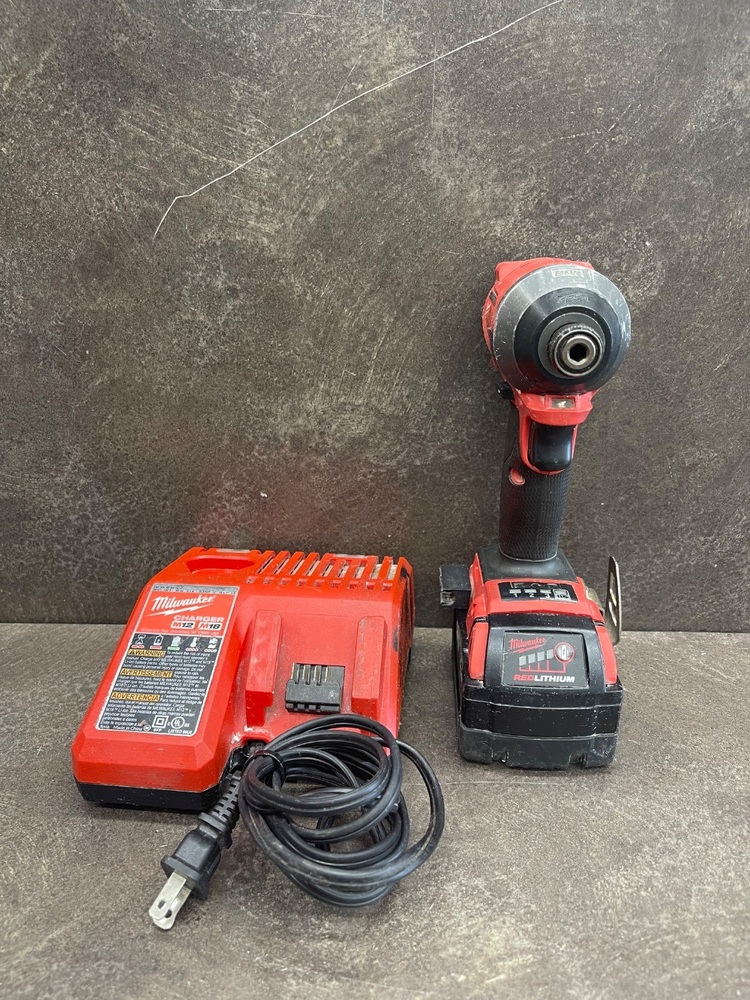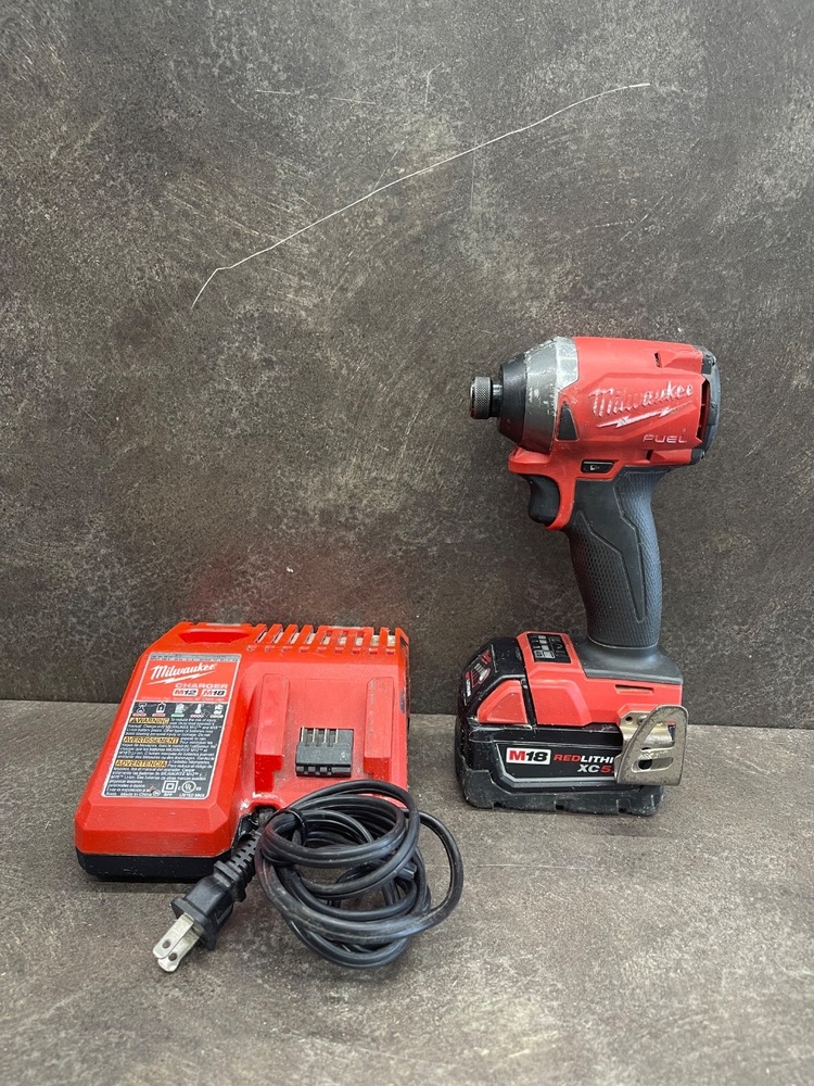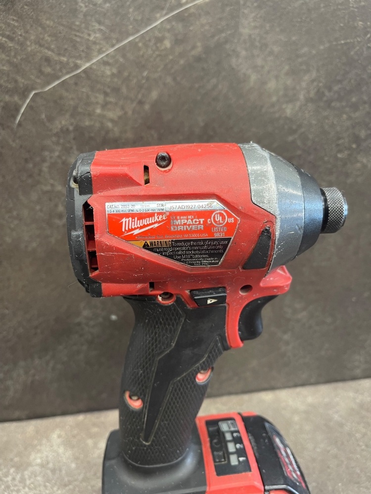 For sale we have a Milwaukee Impact Drill in good condition, with some marks and scuffs from every day use as shown in pictures. Comes with 1 battery, and charger, if you have any questions before purchasing please let us know.