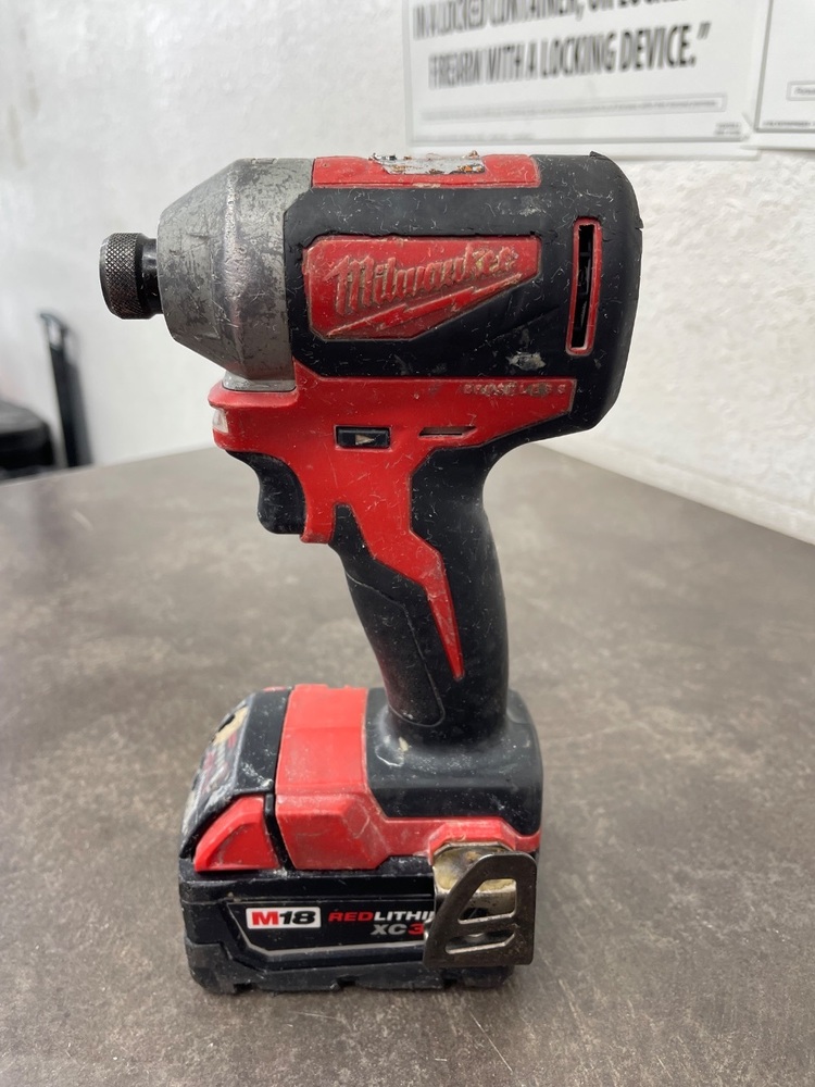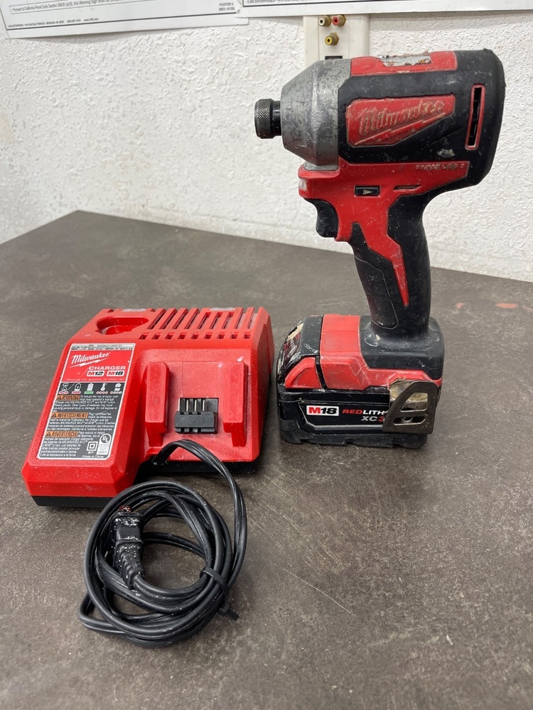 For sale we have a Milwaukee Impact in decent condition, with marks and scuffs from every day use as shown in pictures. Comes with one 3.0 battery, and one charger, if you have any questions before purchasing please let us know.