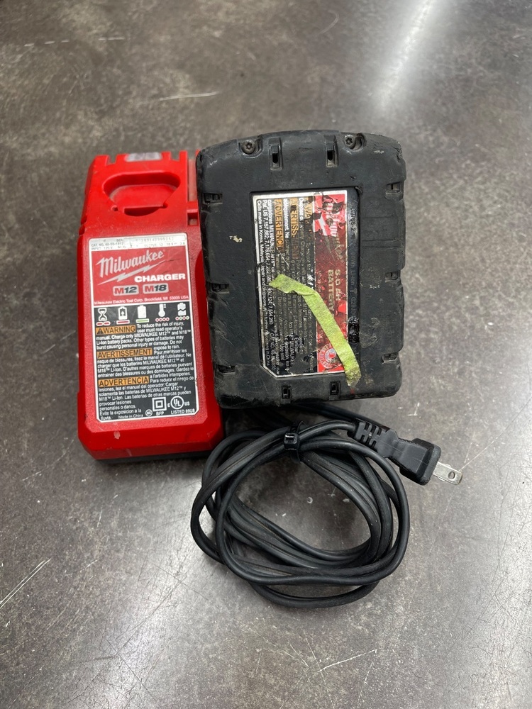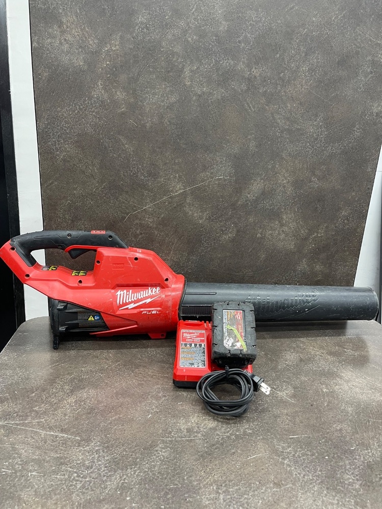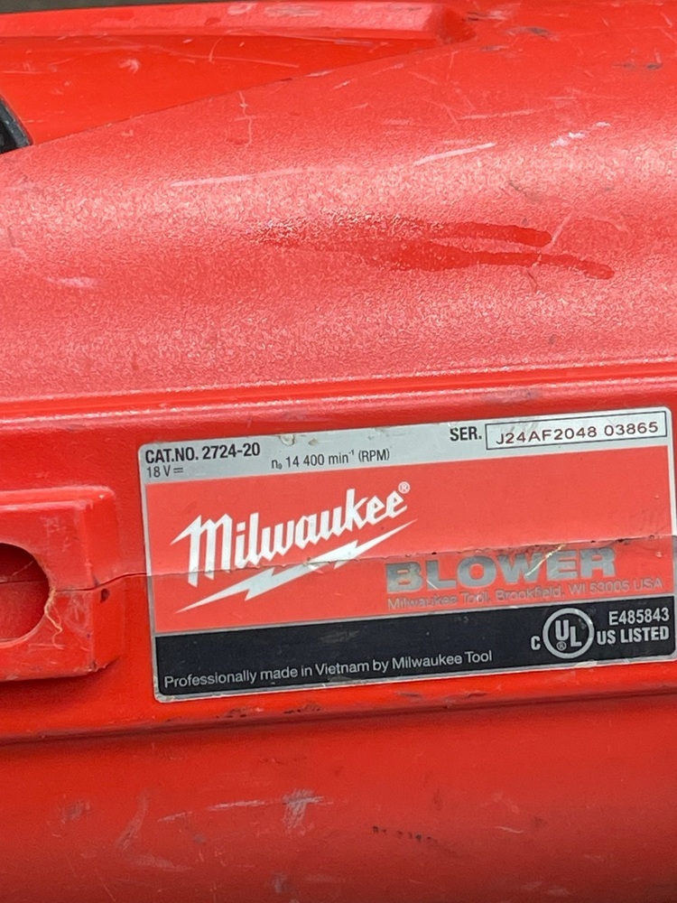 For sale we have a Milwaukee Blower in good condition, with marks and scuffs from every day use as shown in pictures. Comes with 1 original charger, and 1 5.0 battery, if you have any questions before purchasing please let us know.