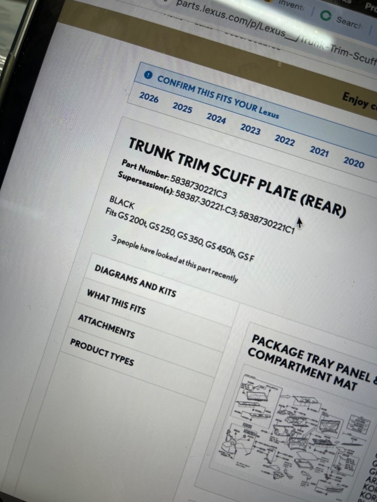 2013-2018 LEXUS GS350 REAR TRUNK FLOOR SCUFF PLATE PANEL COVER TRIM
