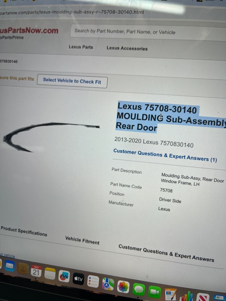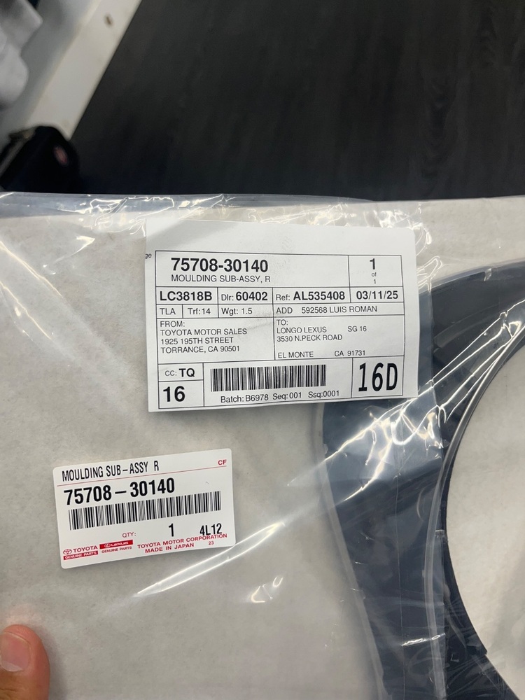 NEW OEM LEXUS 2013-20 GS F SPORT LEFT REAR DOOR MOULDING SUB ASSEMBLY75708-30140