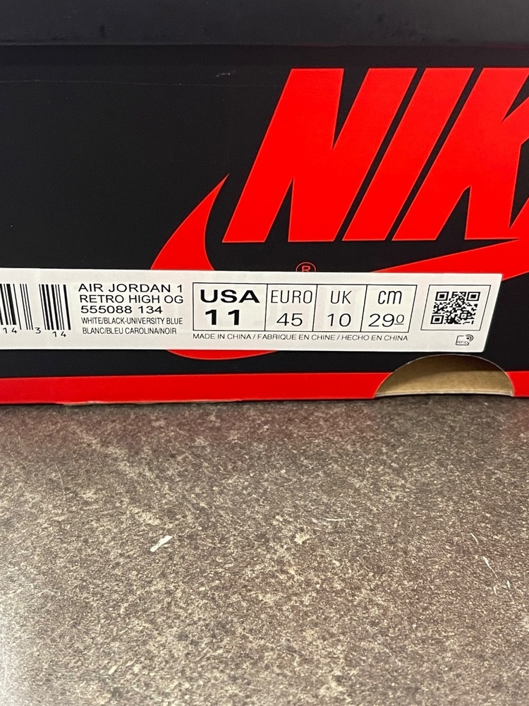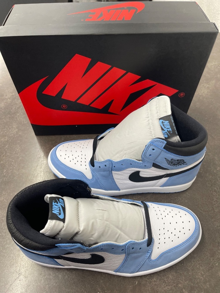For sale are a pair of Nike Air Jordan 1 Retro High OG in University Blue mens 11. The shoes are new and come with their original box. Please see the pictures for more details.