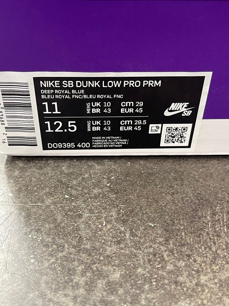 For sale are a pair of Nike SB Dunk Low Pro PRM Los Angeles Dodgers 2022 Deep Royal Blue in a mens 11. The shoes are new and come complete with their box. Please see the pictures for more details.
