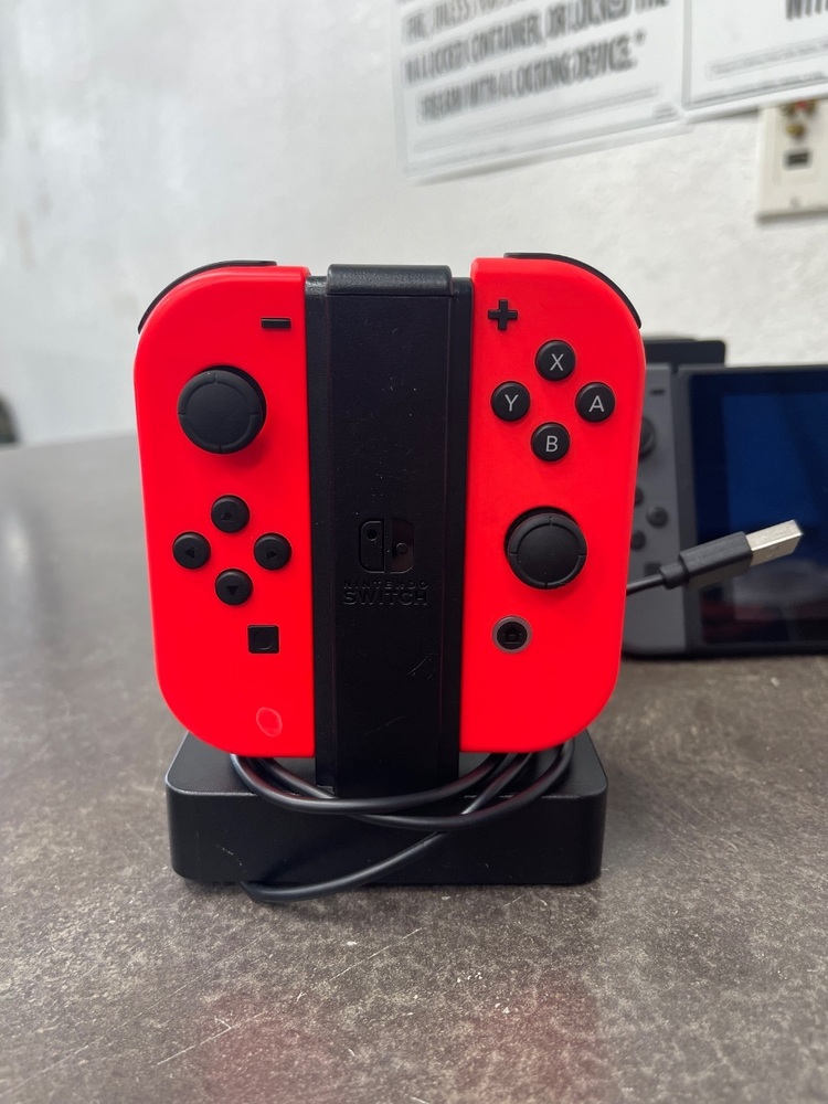 For sale we have a Nintendo Switch in good condition, with some marks and scuffs from every day use as shown in pictures. Comes with dock, charger, cable, and extra neon joy cons with joy con charger, no original box. If you have any questions before purchasing please let us know.
