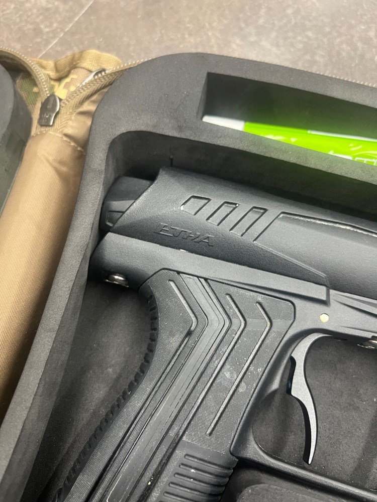 FOR SALE IS A PLANET ECLIPSE ETHA 2 PAINTBALL MARKER W BARREL AND HOPPER.
