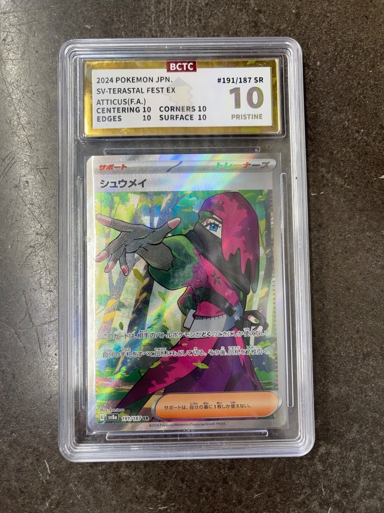 For sale we have a Pokemon Atticus Card in pristine condition, in it's plastic holder as shown in pictures. If you have any questions before purchasing please let us know. Card is BCTC Certified a 10.