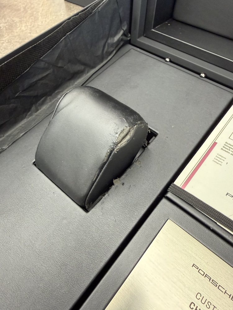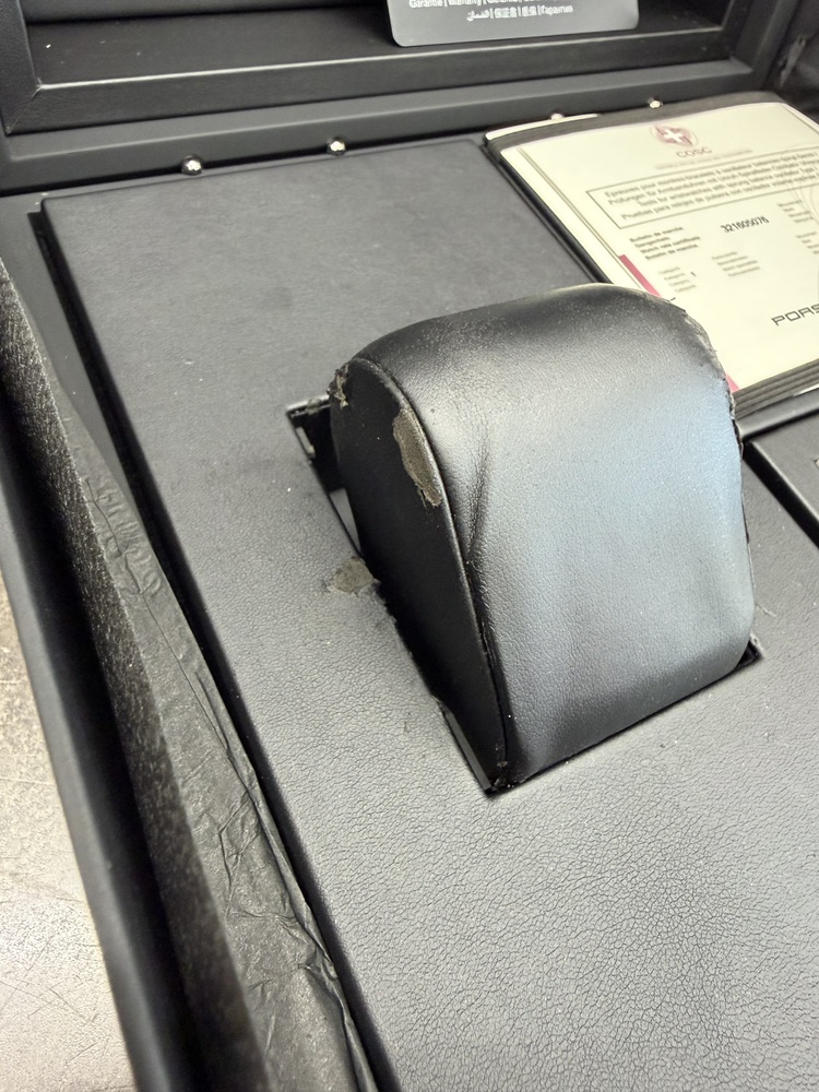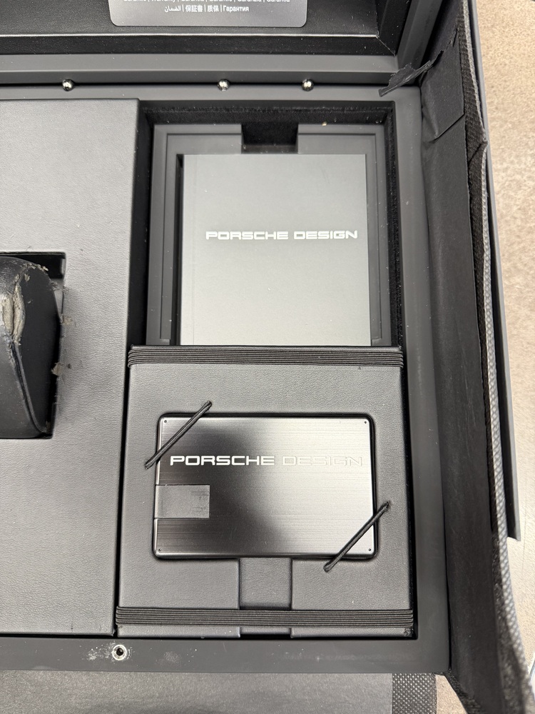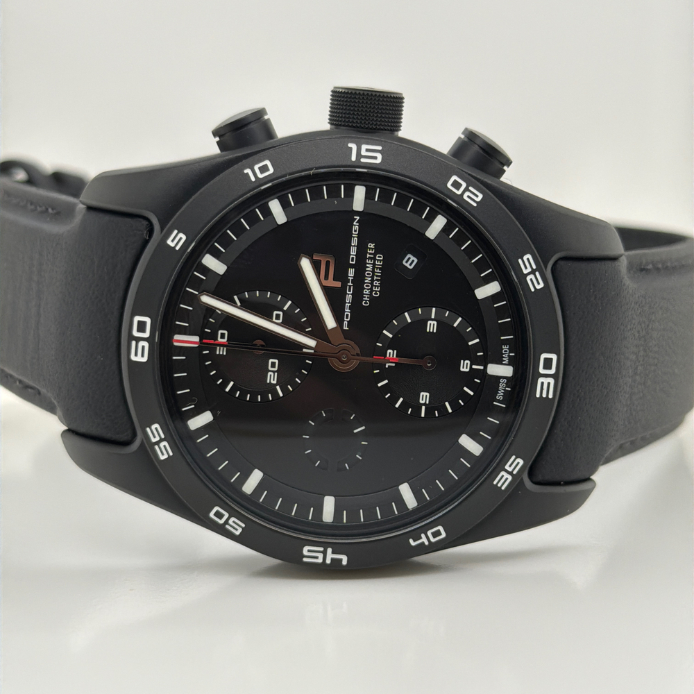 For sale, we have a Porsche Design Chronometer 6014.001 Black Titanium 42mm Automatic Men's Watch. The watch is in Unworn, New Condition. The inner display box does have some peeling as shown in the pictures. If you have any questions before purchasing pleae let us know. (141186)(RCXX)