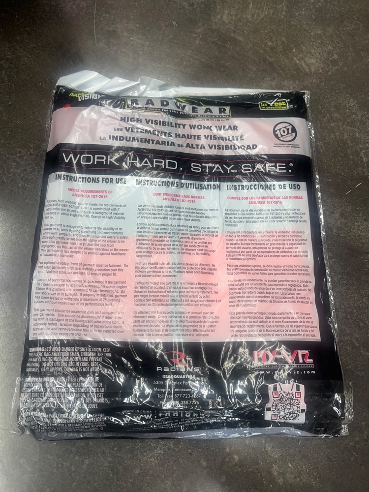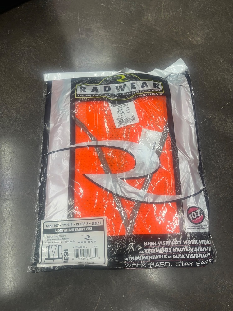 FOR SALE IS A RADWEAR HV-5ANSI-PC-L LIGHTWEIGHT SAFETY VEST SIZE LARGE ORANGE TYPE R CLASS 2 .