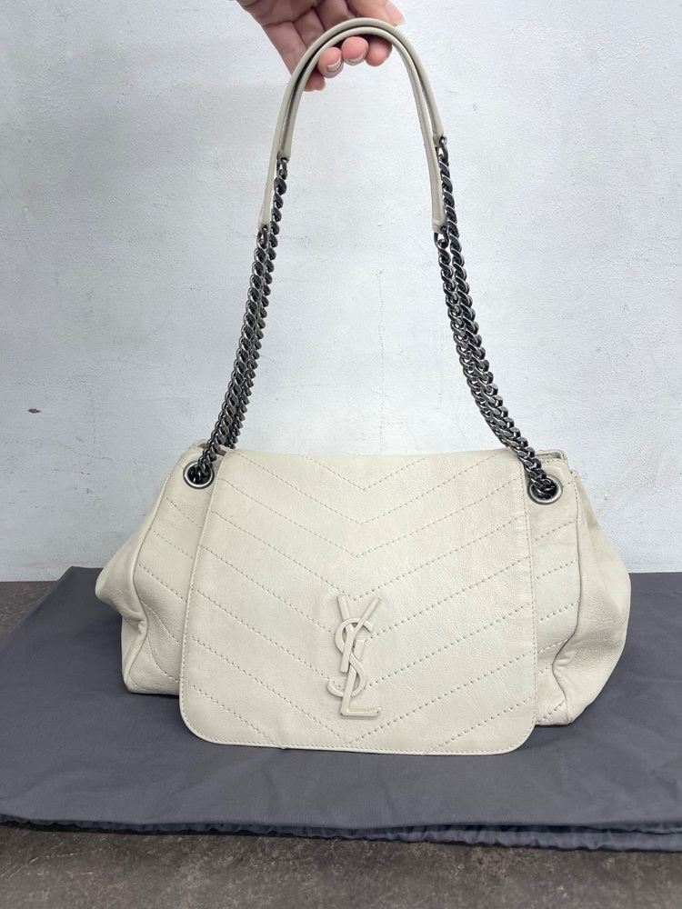 For sale we have a Saint Laurent Nolita Medium Satchel in good condition, with some marks and scuffs from every day use as shown in pictures. Comes with Fashionphile dust bag, no original box, if you have any questions before purchasing please let us know.
