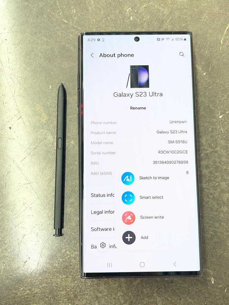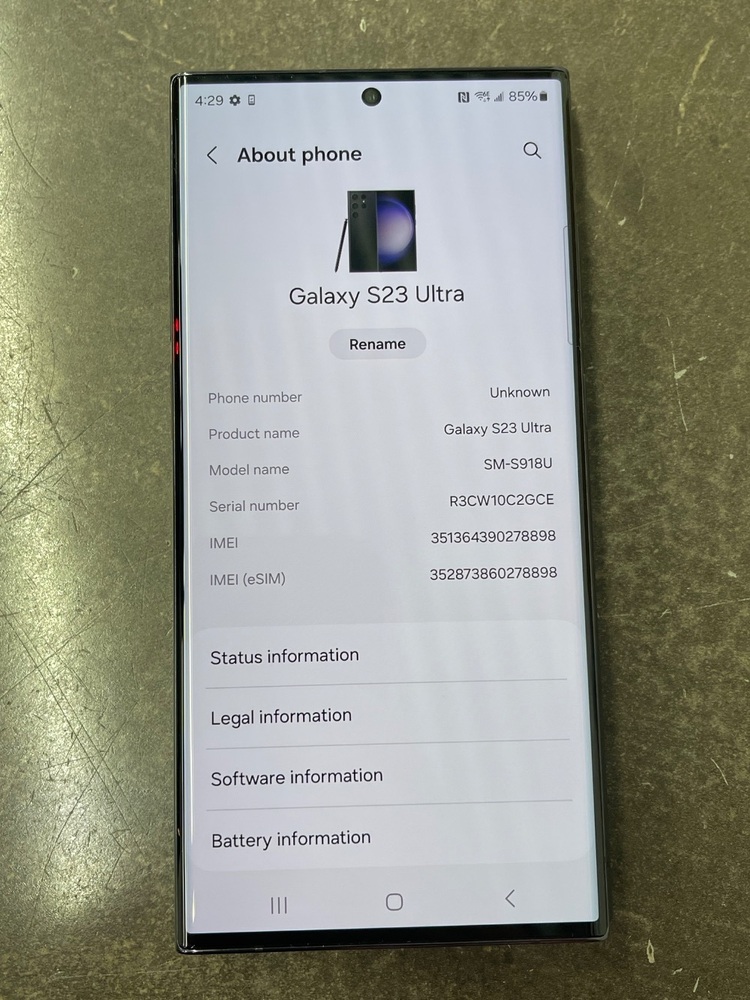 For sale we have a Samsung S23 Ultra in good condition, with some marks and scuffs from every day use as shown in pictures. Comes with a black case, no original box or charger, if you have any questions before purchasing please let us know.