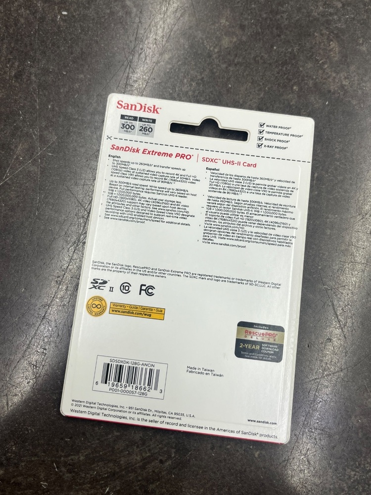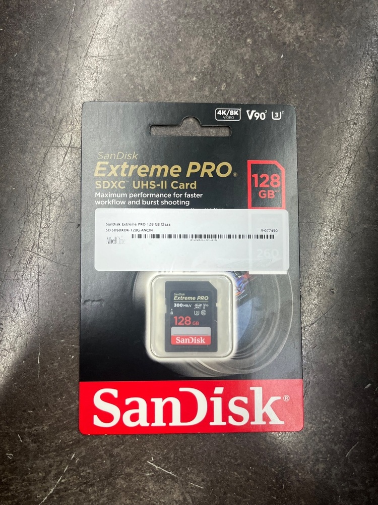 For sale is a Sandisk 128GB Etreme Pro SDXC UHS-II SD Memory Card 300MB/s. The memory card is new and sealed. Please see pictures for more details.