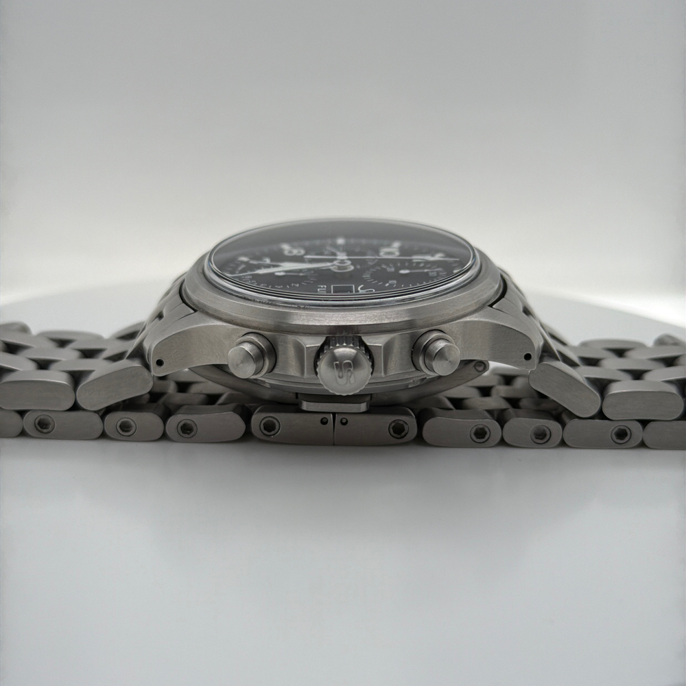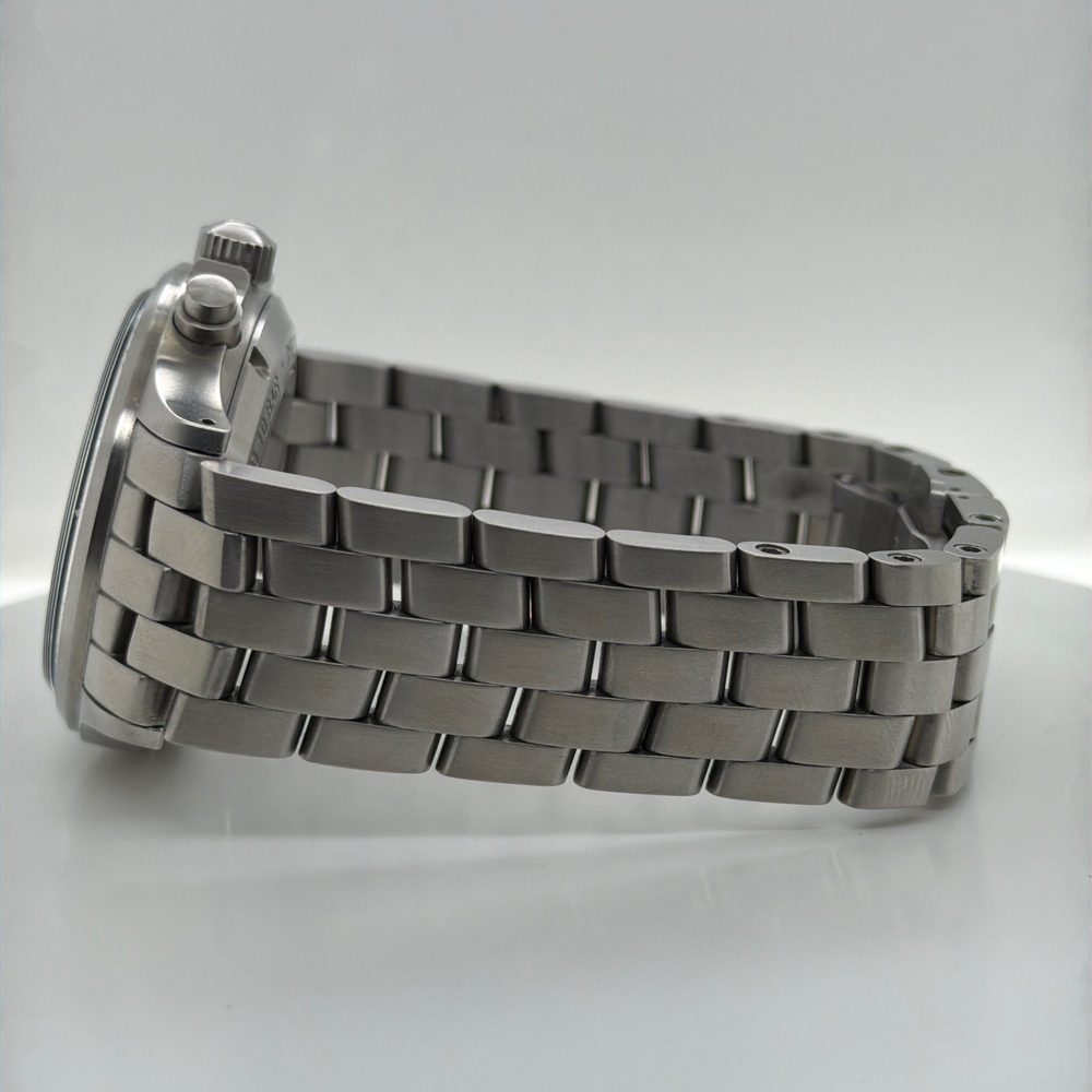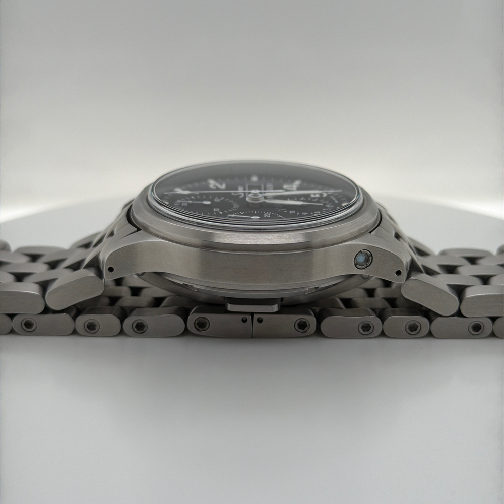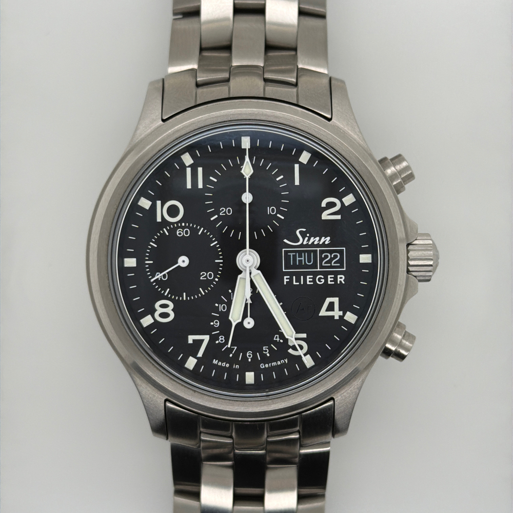 For sale, we have a Sinn 358.062 SA Flieger Chronograph 42mm Automatic Men's Watch. Comes with the Original Box, Paperwork, & Tools as pictured. The watch is in great condition with some light scratches and marks from use as shown in the pictures. With the current links, the watch can fit up to a 7" Wrist. If you have any questions before purchasing please let us know. (119064)(RRSX)