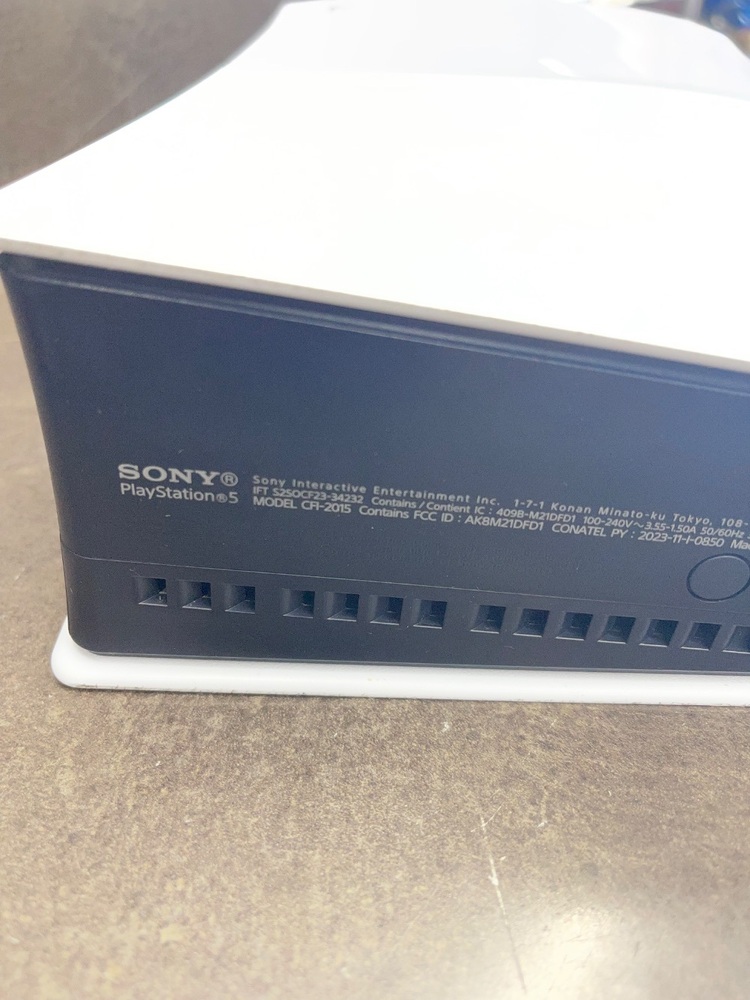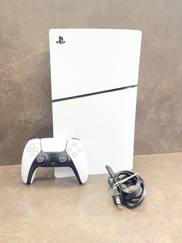 For sale we have a Sony PS5 Slim digital in good condition, with some marks and scuffs from every day use as shown in pictures. Comes with 1 controller and power cable, no HDMI. If you have any questions before purchasing please let us know.