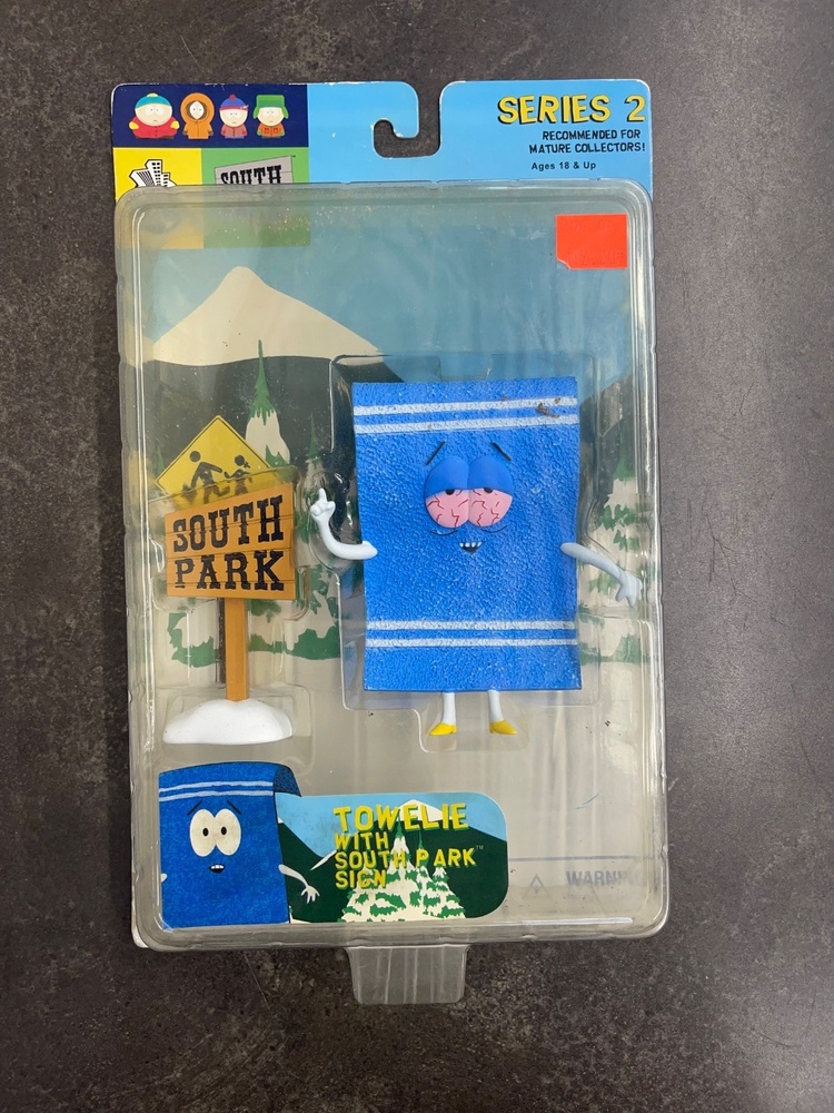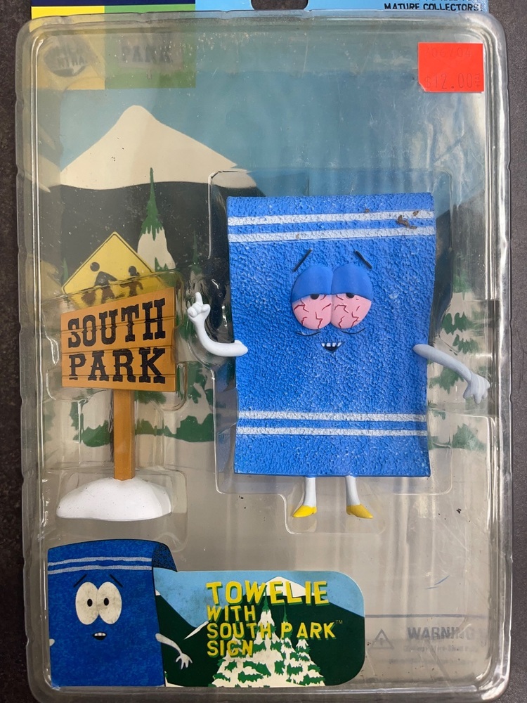 For sale we have a South Park Towelie collectible in good condition, with some dents and signs of handling on outside of box. Collectible only, if you have any questions before purchasing please let us know.