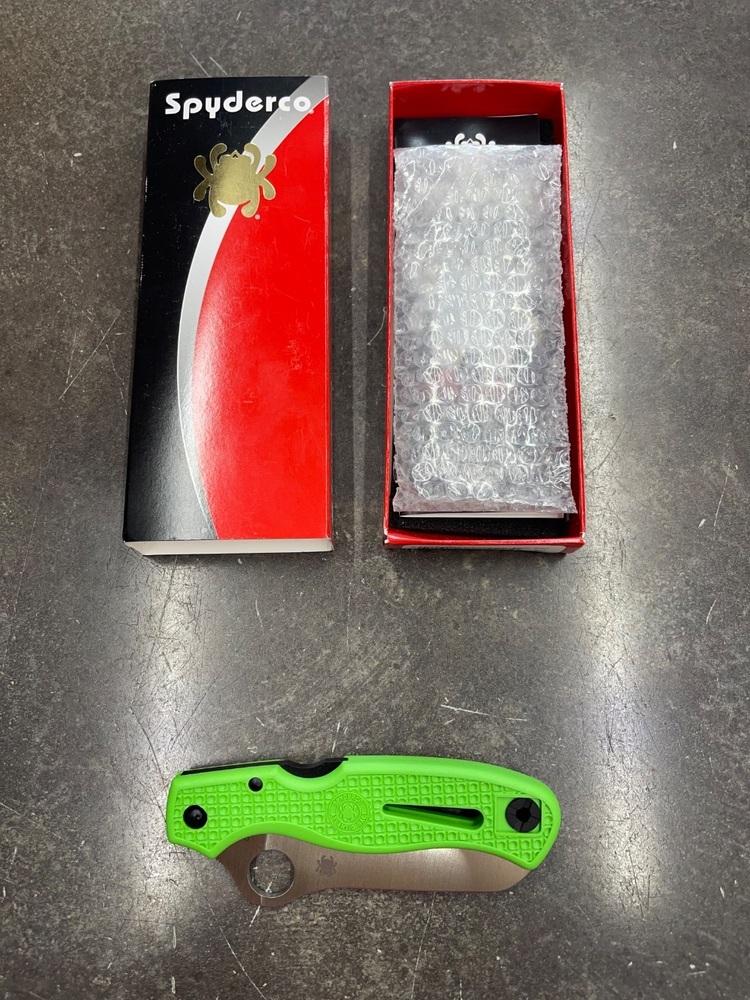 For sale we have a Spyderco Atlantic Green in new open box condition, with it's original box and papers. If you have any questions before purchasing please let us know.