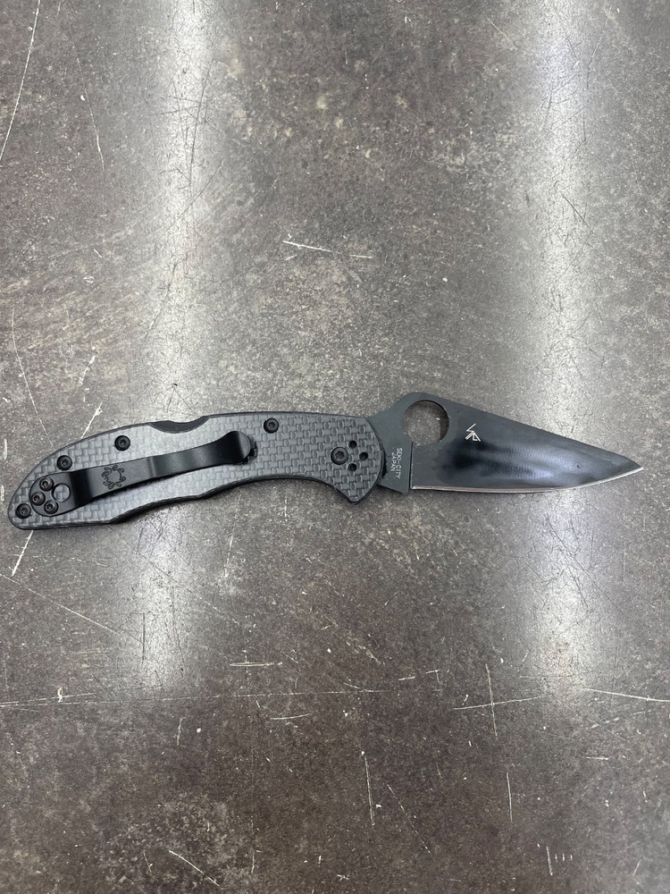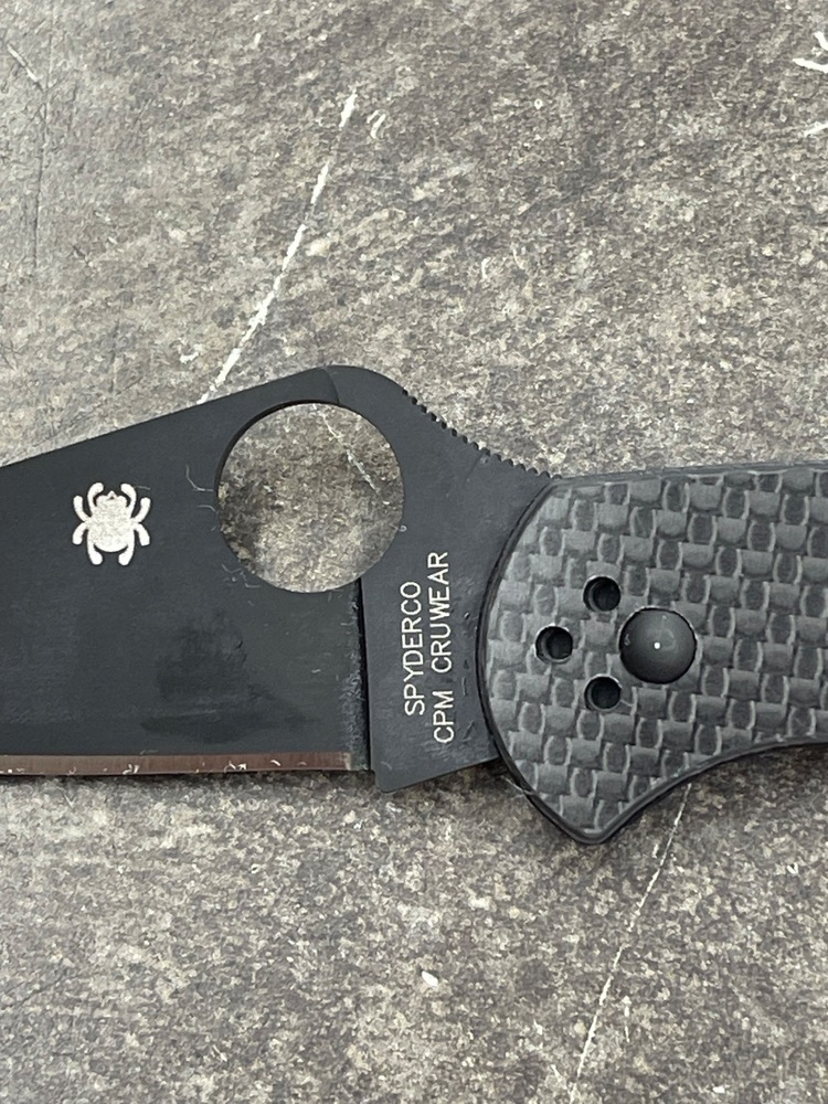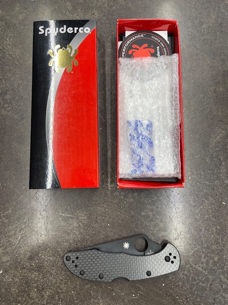 For sale we have a Spyderco Delica CF in new condition, with the original box and papers as shown in pictures. If you have any questions before purchasing please let us know.