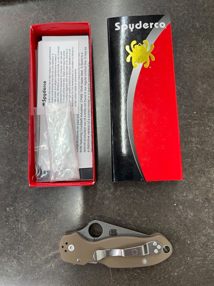 For sale we have a Spyderco Para 3 in open boox condition, still in it's plastic packaging, and with it's original box. If you have any questions before purchasing please let us know.