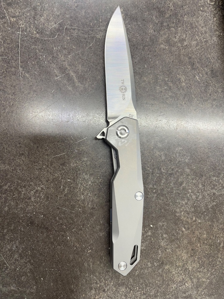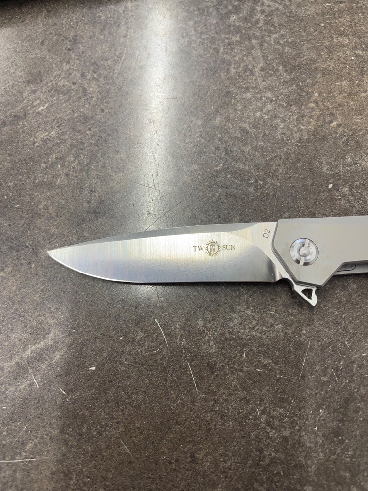 For sale is a Two Suns D2 3.5" Knife. The knife has a folding blade and is in great pre-owned condition. Please see the pictures for more details.