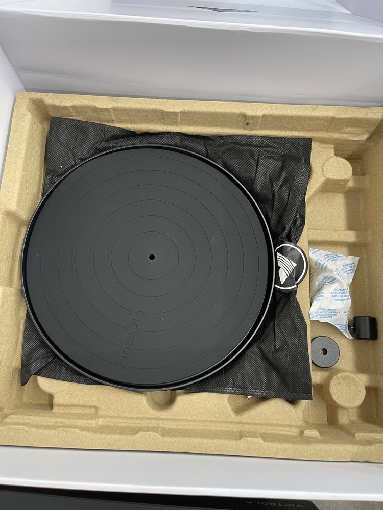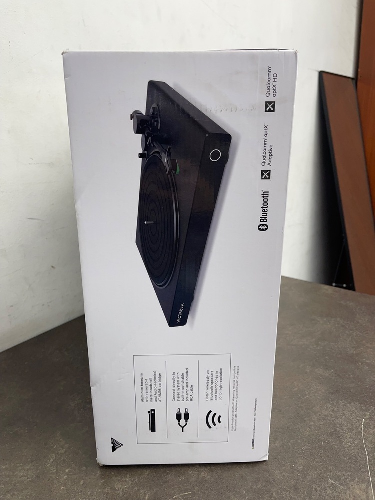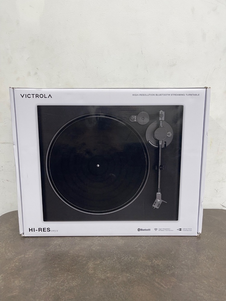 For sale we have a Victrola Hi Res turntable in new condition, with it's original box and packaging as shown in pictures. Comes with power cable and other accessories shown, if you have any questions before purchasing please let us know.